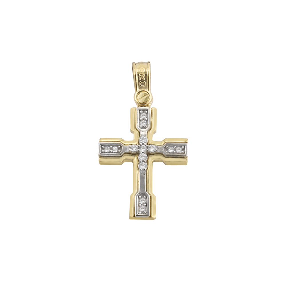 Greek Jewelry, A Yellow and White Gold Baptism Cross pendant that is perfect for adults and babies.