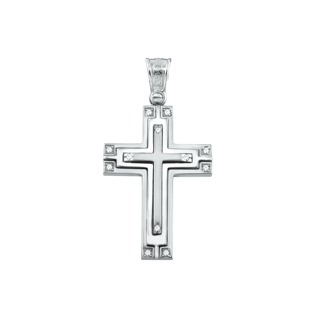 This sleek and simple cross is fashioned of 14k Solid Yellow and White Solid Gold Cross Pendant for Polished with 12 round white cz