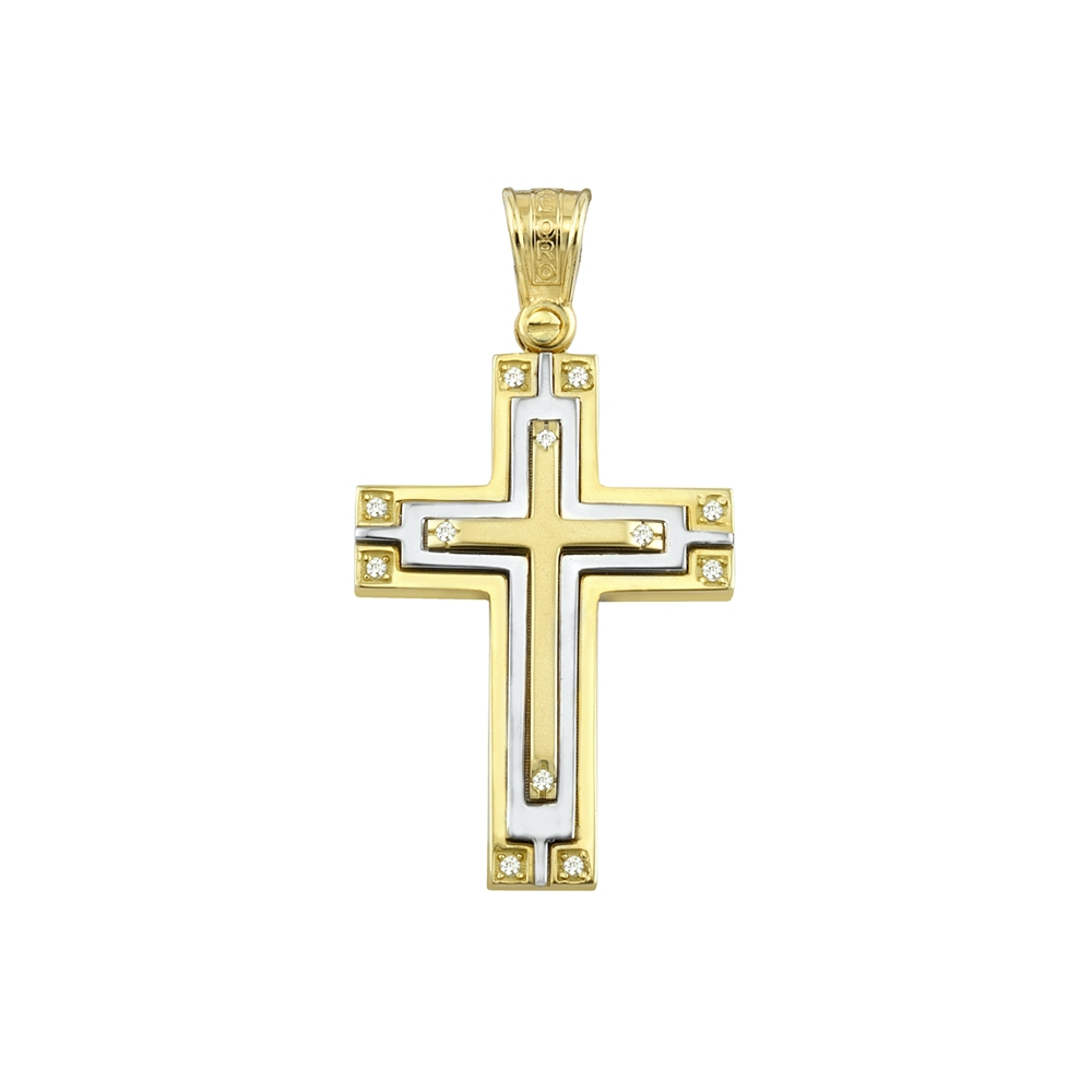 Greek Jewelry, A Yellow and White Gold Baptism Cross pendant that is perfect for adults and babies.