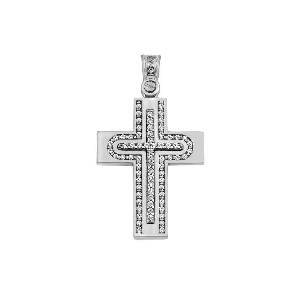 This sleek and simple cross is fashioned of 14k Solid Yellow and White Solid Gold Cross Pendant for Polished with 72 round white cz