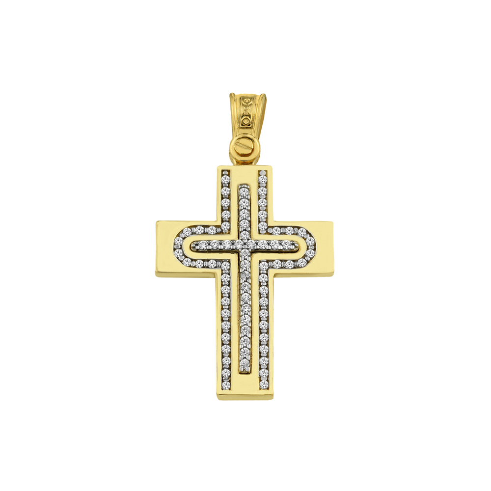Greek Jewelry, A Yellow and White Gold Baptism Cross pendant that is perfect for adults and babies.