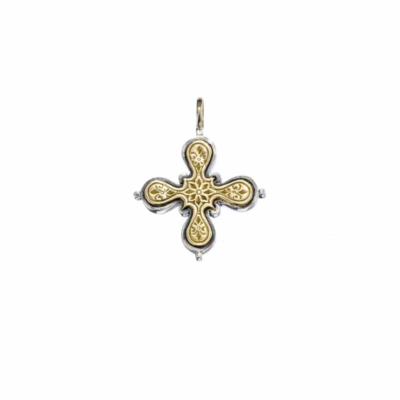 Greek Jewelry, Byzantine Cross Pendant 18k Yellow Gold and Sterling Silver 925
