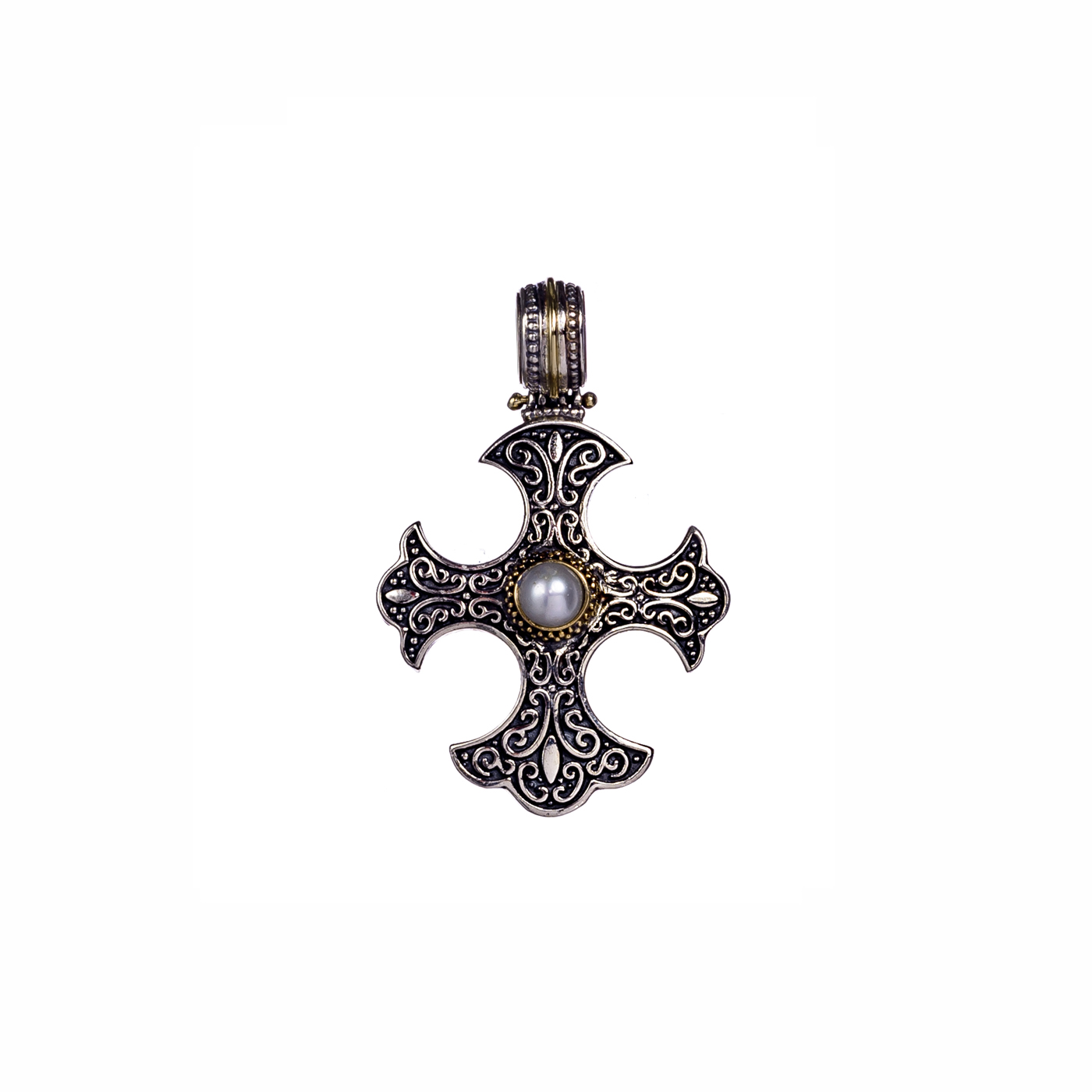 Greek Jewelry, Gothic Handmade Cross Pendant 18k Yellow Gold and Sterling Silver 925