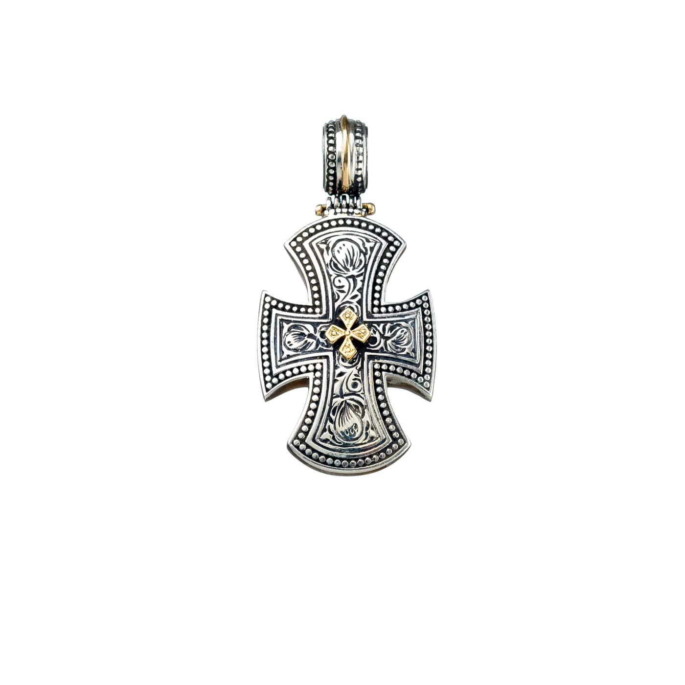 Maltese Men’s Cross Pendant 18k Yellow Gold and Sterling Silver 925