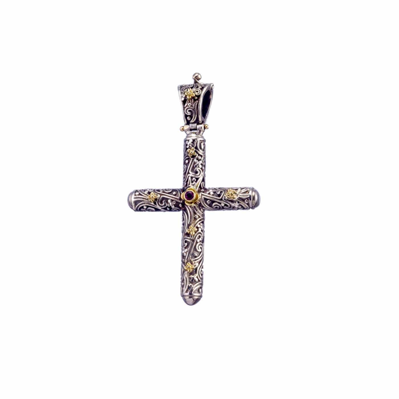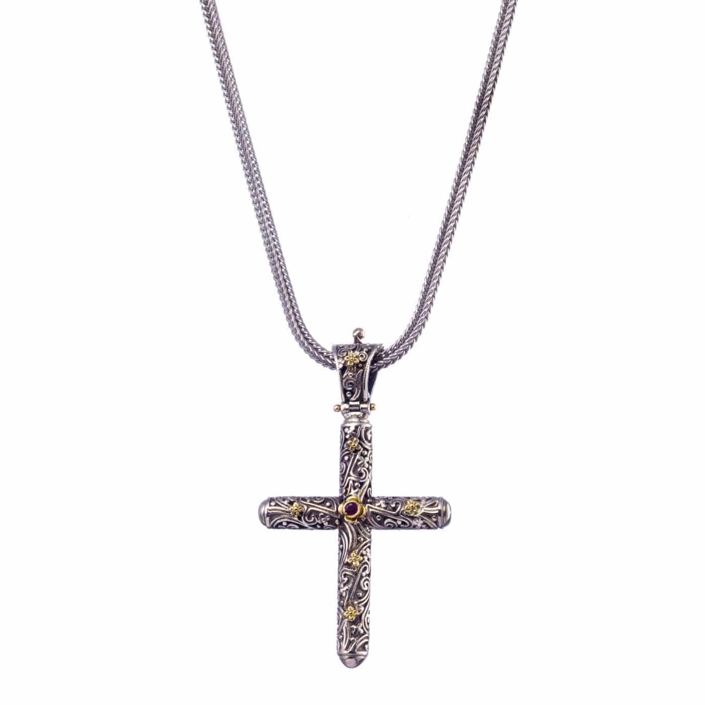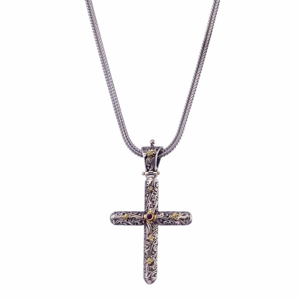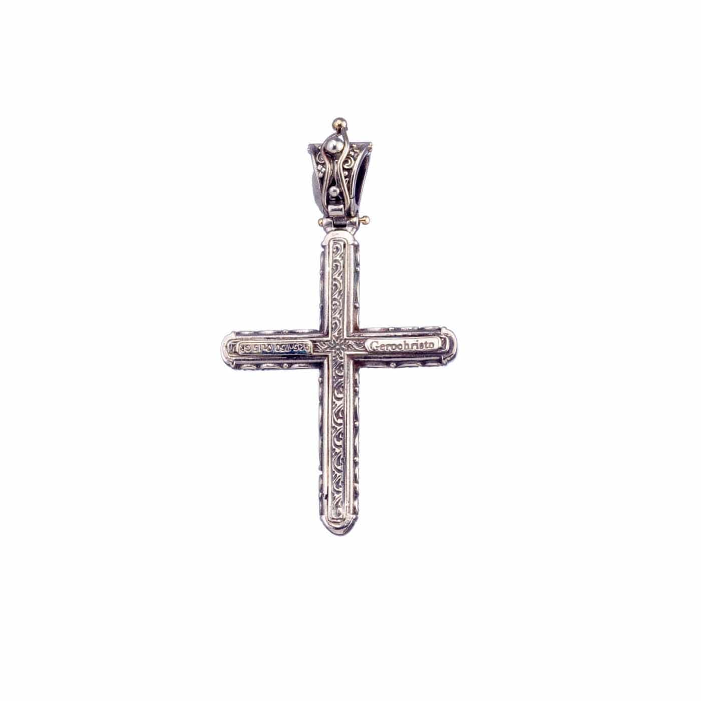 Greek Jewelry, Men’s Flower Cross Pendant 18k Yellow Gold and Sterling Silver 925