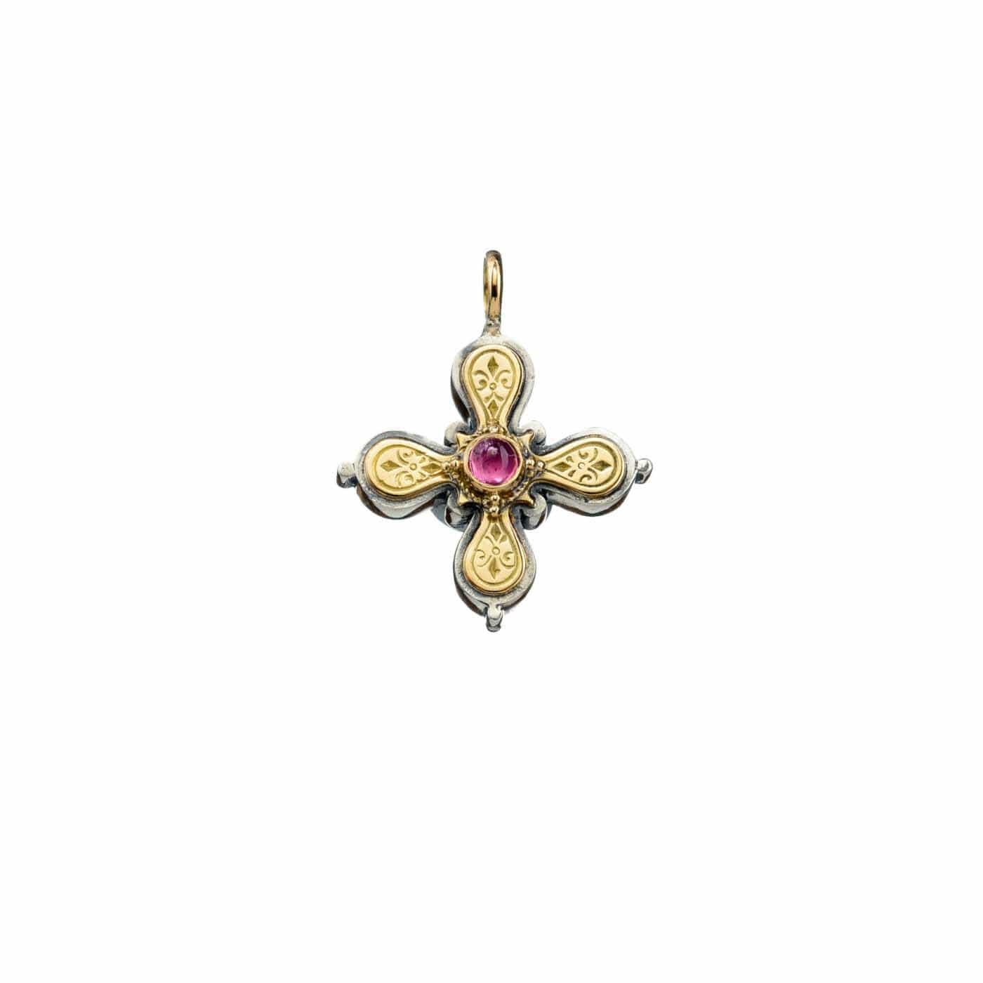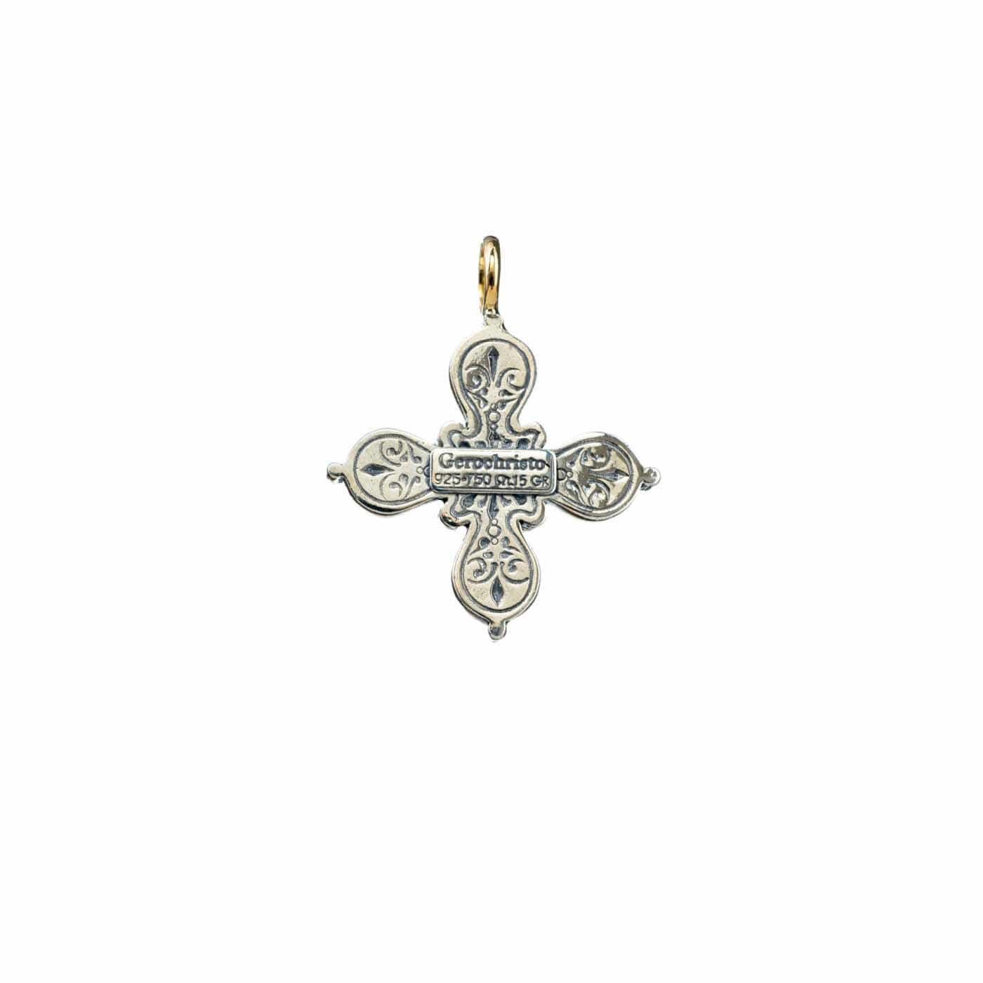 Greek Jewelry, Byzantine Cross Pendant 18k Yellow Gold and Sterling Silver 925