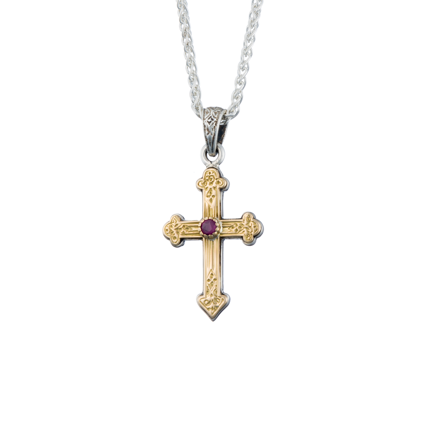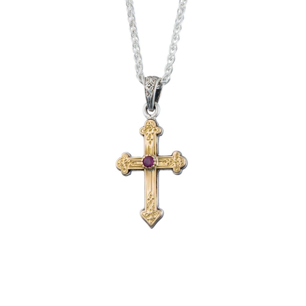 Greek Jewelry, Byzantine Cross Pendant 18k Yellow Gold and Sterling Silver 925