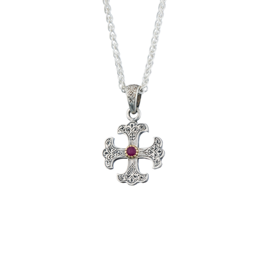 Greek Jewelry, Byzantine Cross Pendant 18k Yellow Gold and Sterling Silver 925