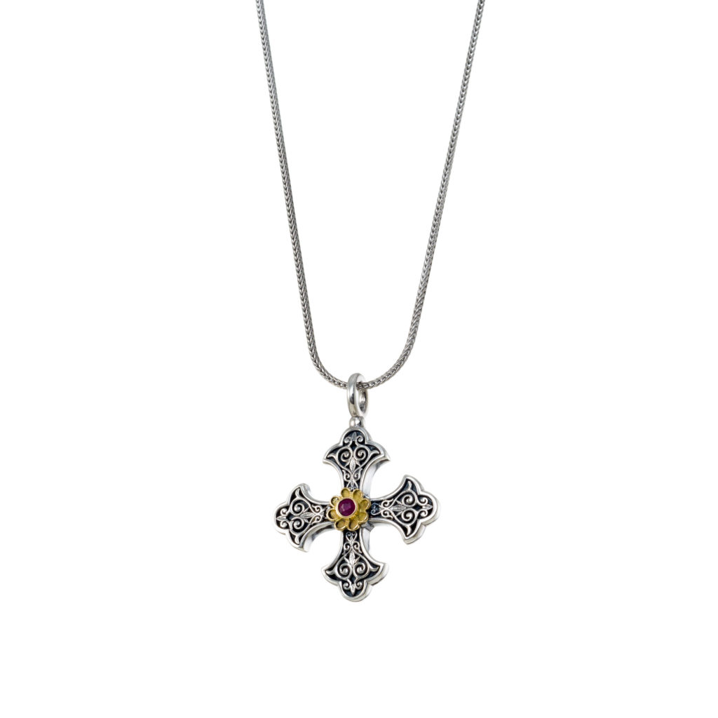 Byzantine Cross Pendant 18k Yellow Gold and Sterling Silver 925