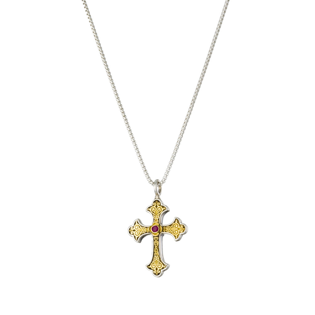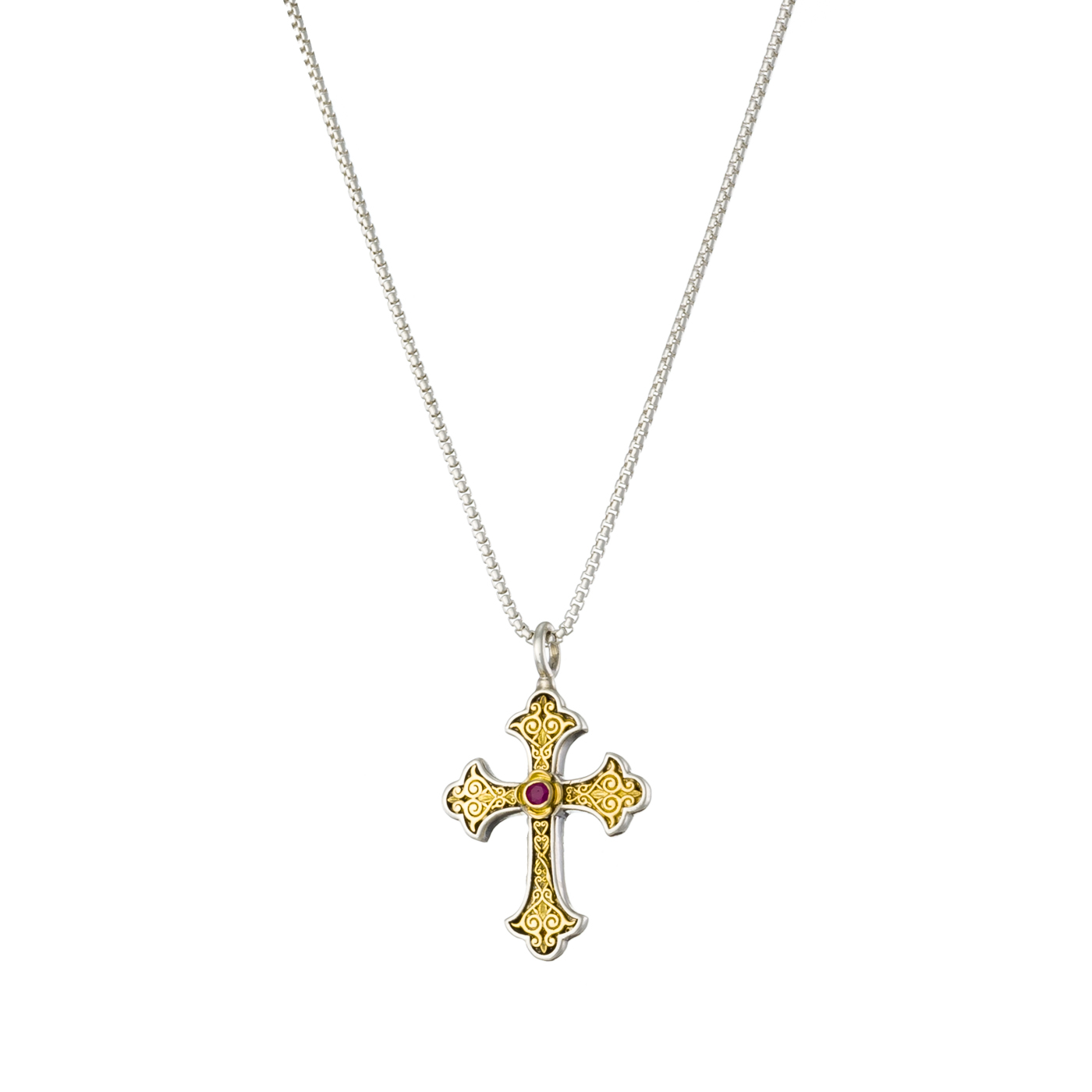 Byzantine Cross Pendant 18k Yellow Gold and Sterling Silver 925