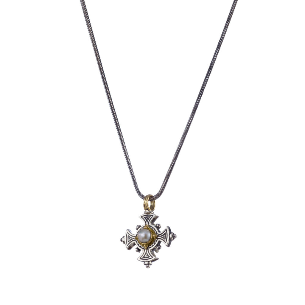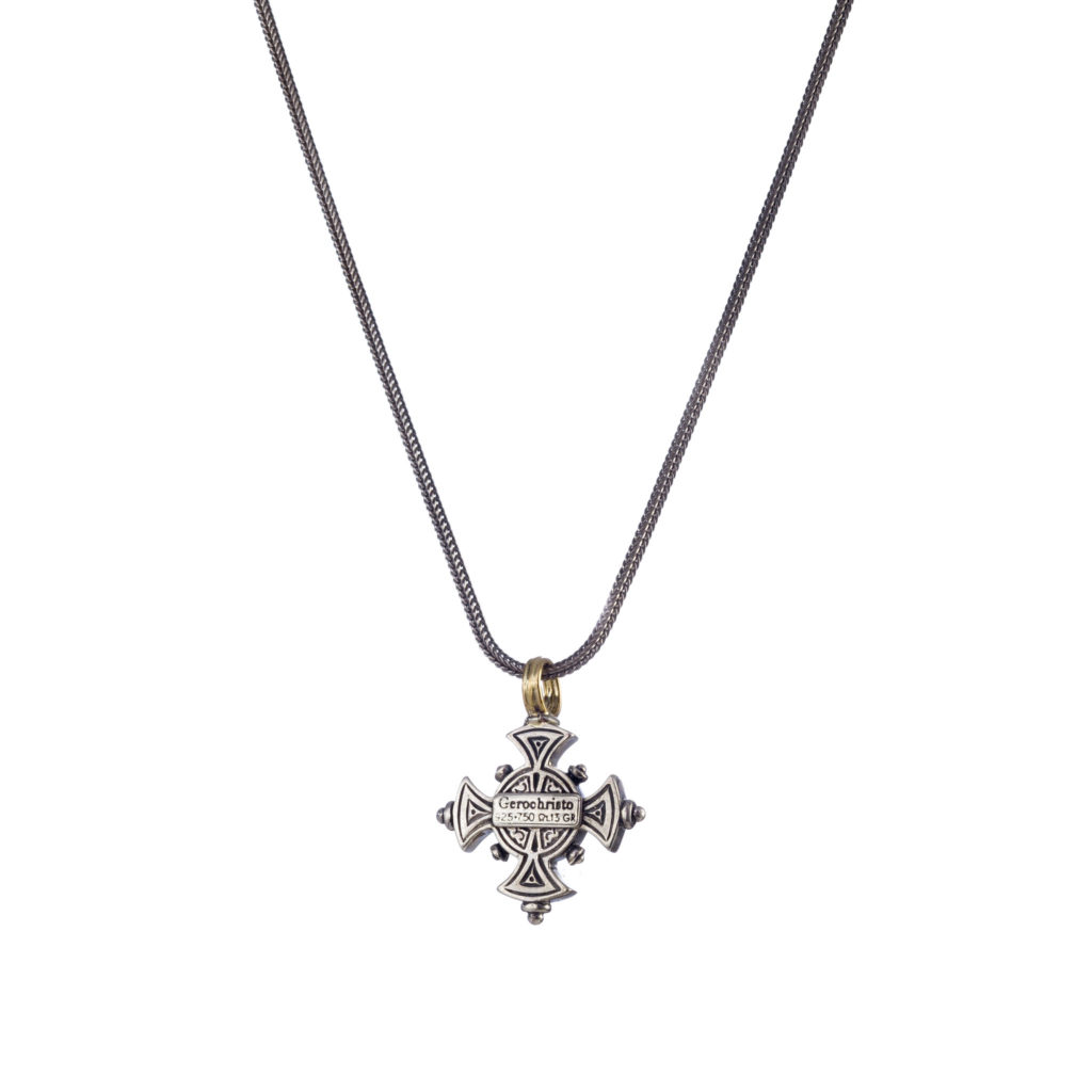 Greek Jewelry, Byzantine Cross Pendant Garnet 18k Yellow Gold and Sterling Silver 925