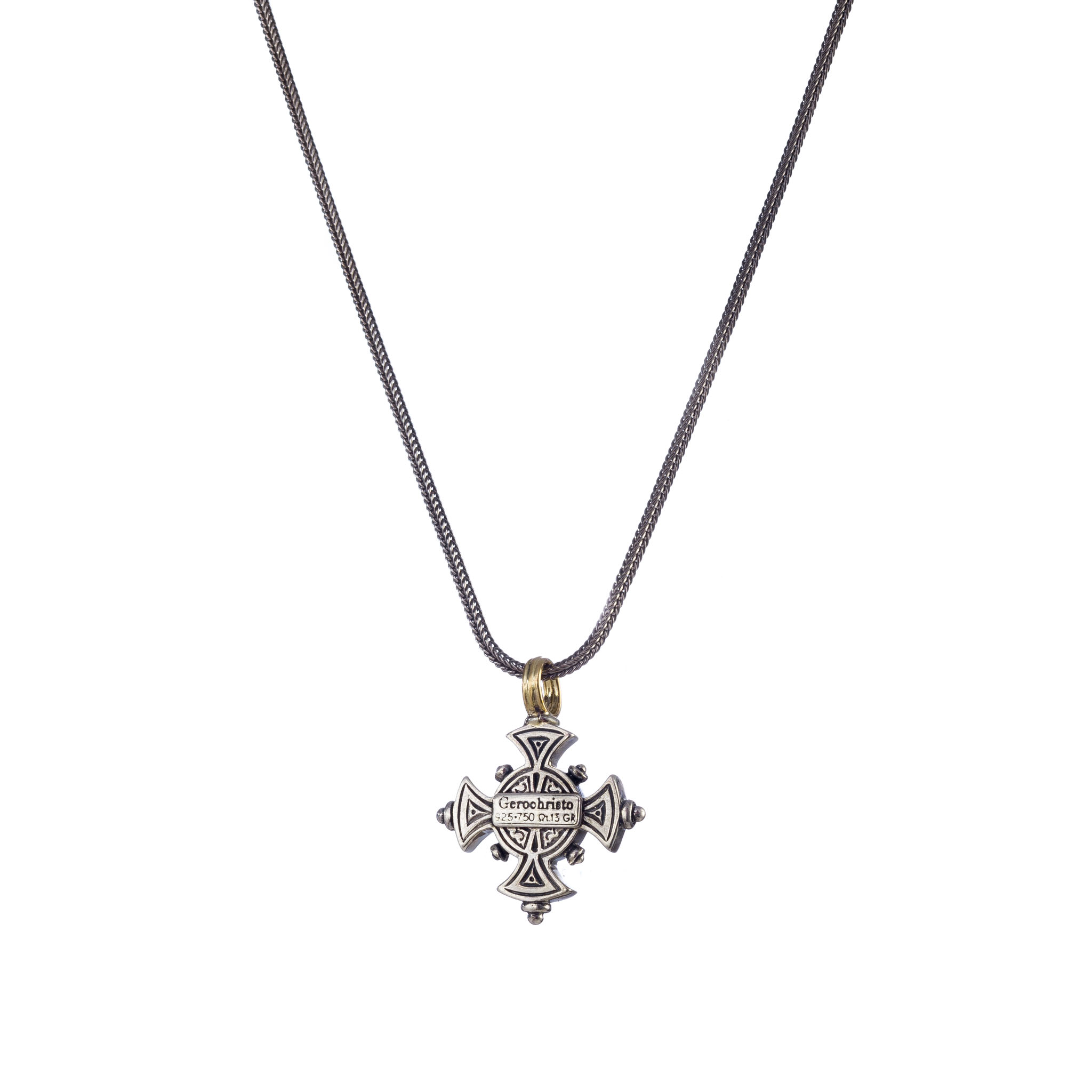 Byzantine Cross Pendant Garnet 18k Yellow Gold and Sterling Silver 925