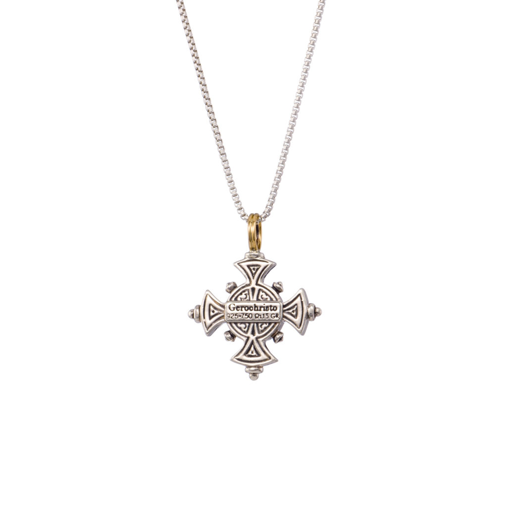 Greek Jewelry, Byzantine Cross Pendant 18k Yellow Gold and Sterling Silver 925