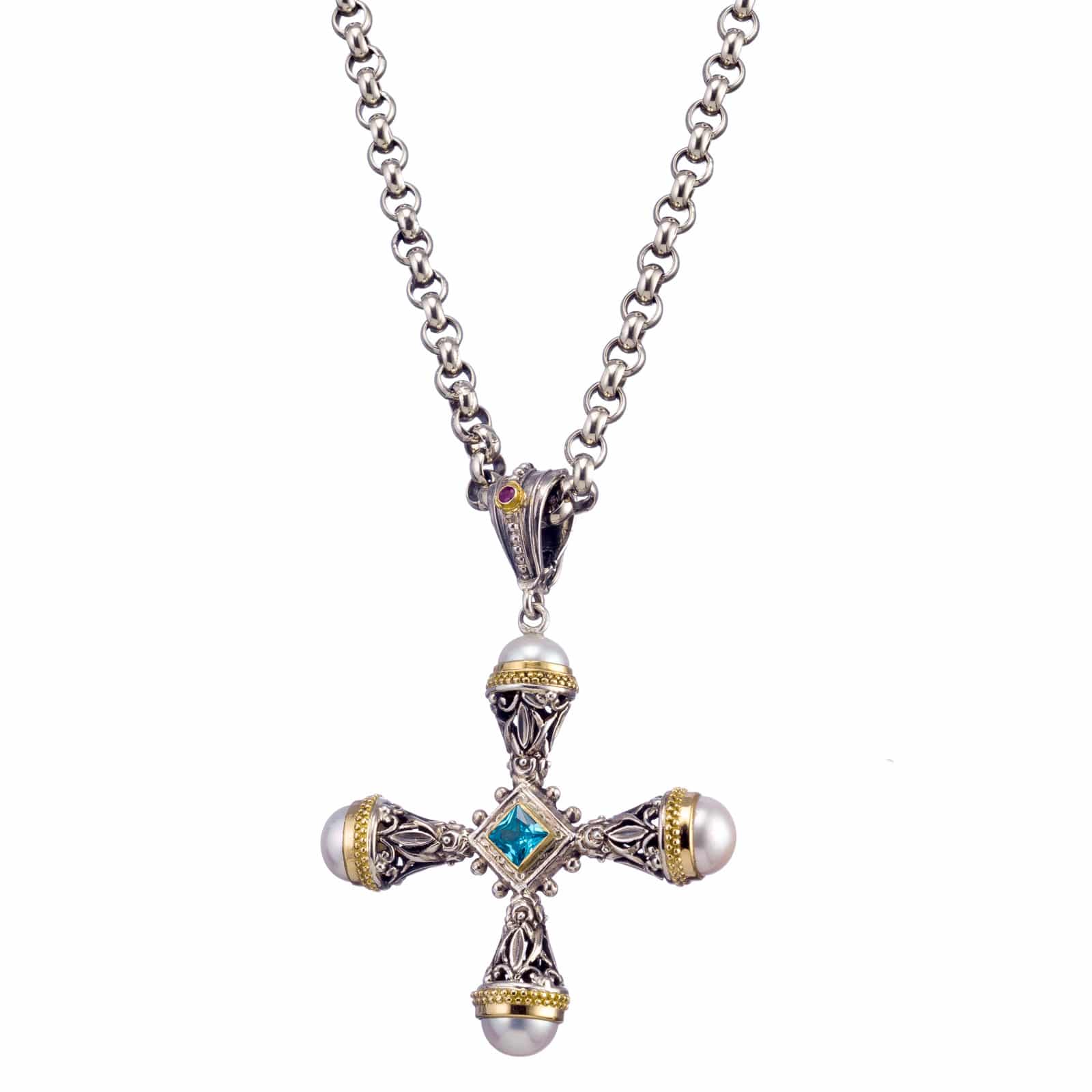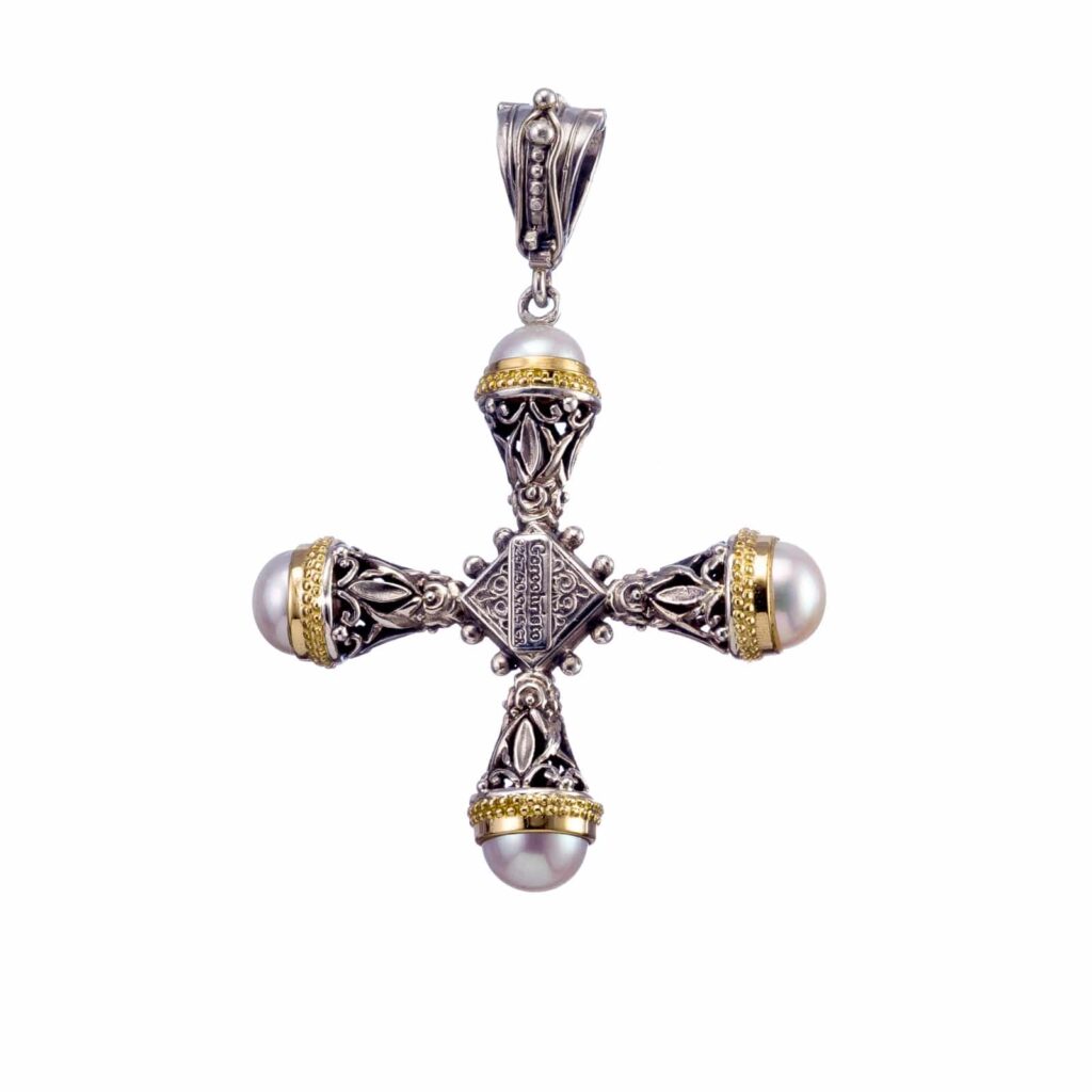 Greek Jewelry, Pearl-adorned crosses that honor tradition with elegance. Explore meaningful, refined jewelry designs.