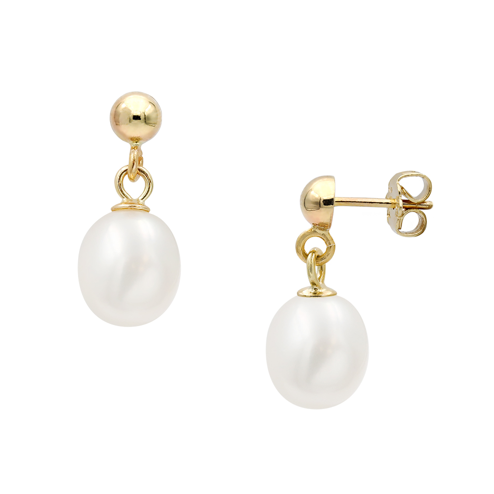Oval Freshwater Pearls 8-10mm Drop Earrings in 14k Yellow Gold