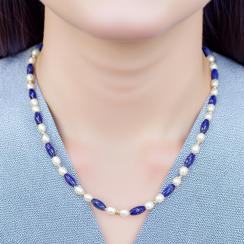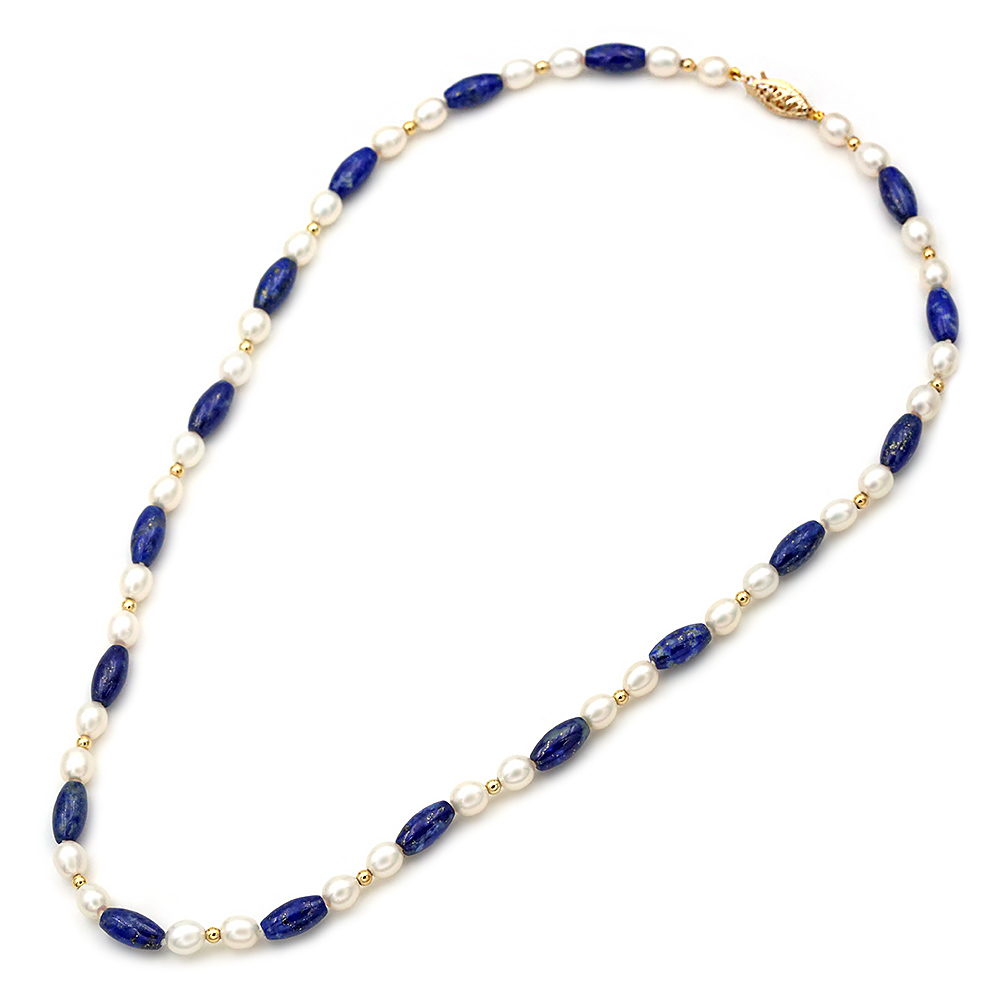 *Necklace with 5.0 x 7.0mm Oval AAA Quality Fresh Water Pearls and 5.0 x 9.0mm Oval Lapis Lazuli.