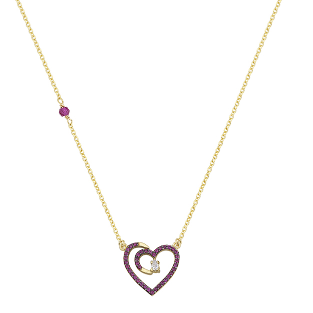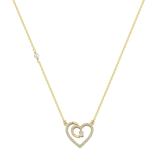 Greek Jewelry, Heart Charm Necklace Yellow Gold k14 with Cubic Zirconia for Women for Teen