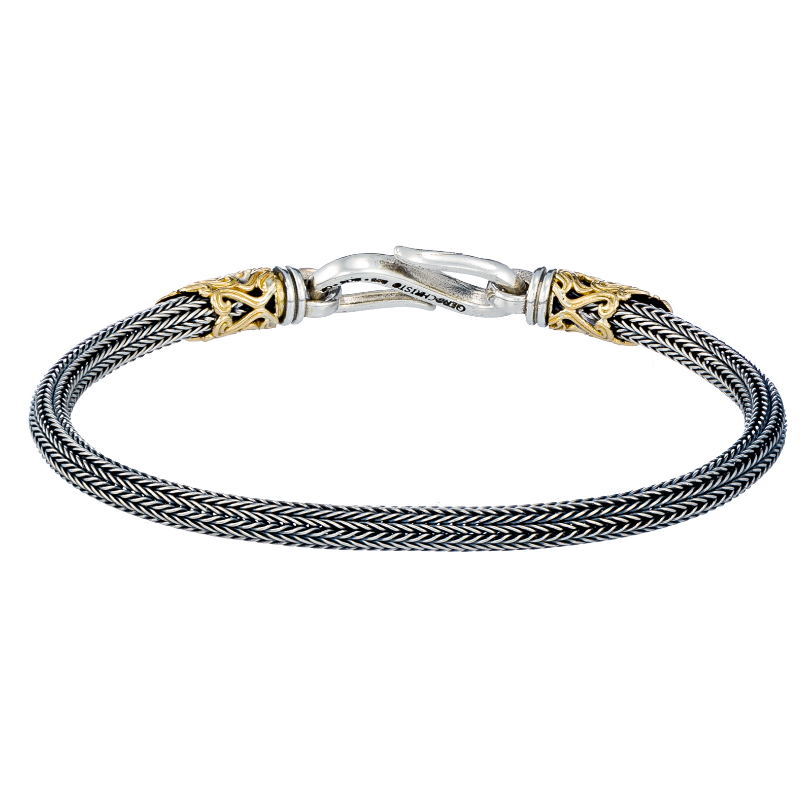 Greek Jewelry, Elegant Bracelet for Men Braided Handmade Chain 925 Silver and 18k Gold
