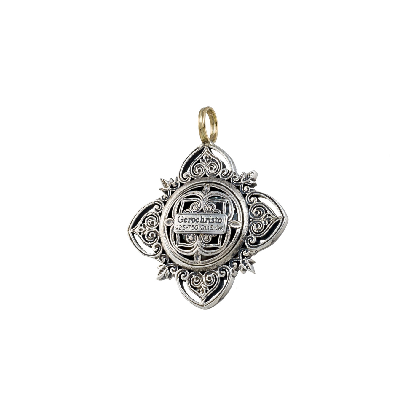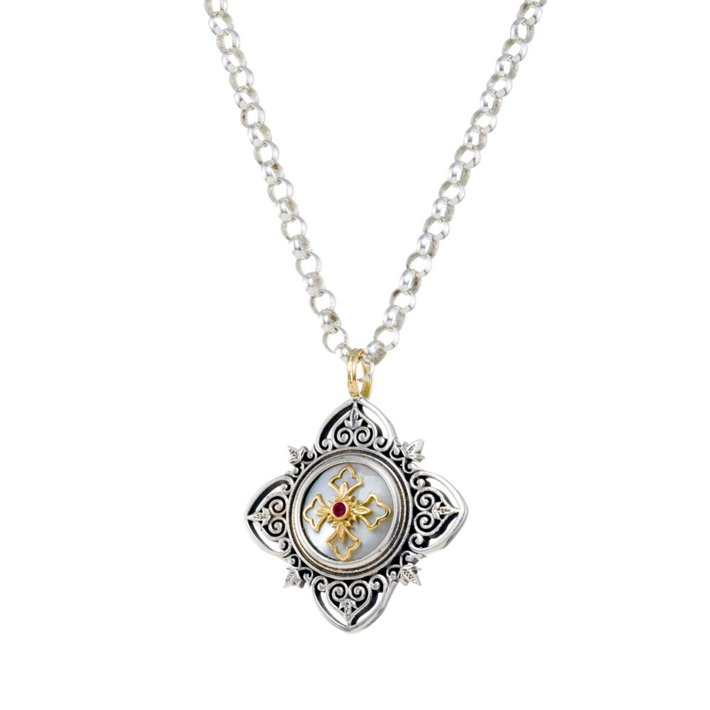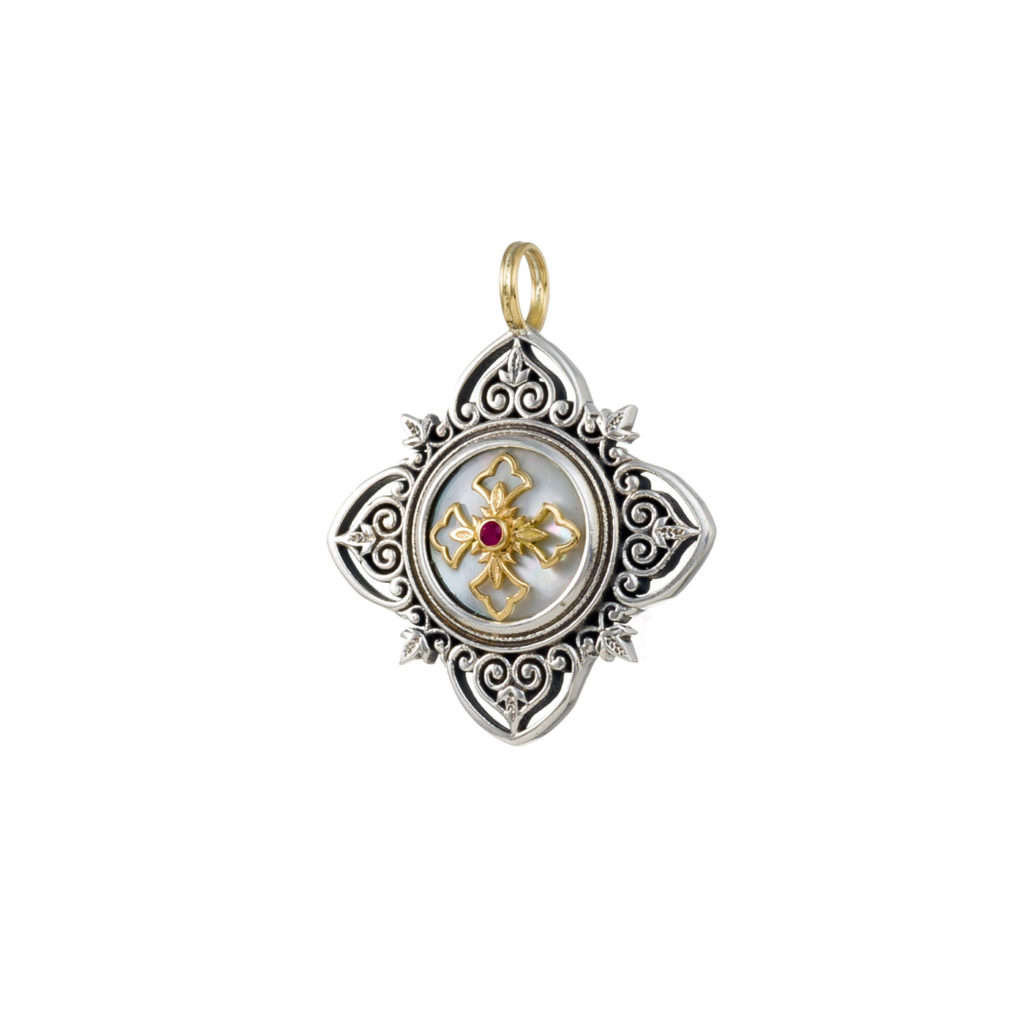 Greek Jewelry, Filigree Cross Pendant Byzantine 18k Yellow Gold and Sterling Silver 925