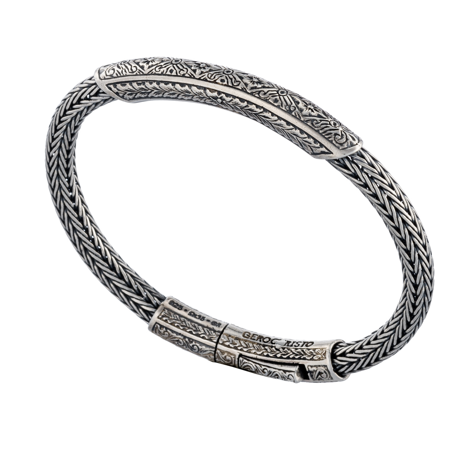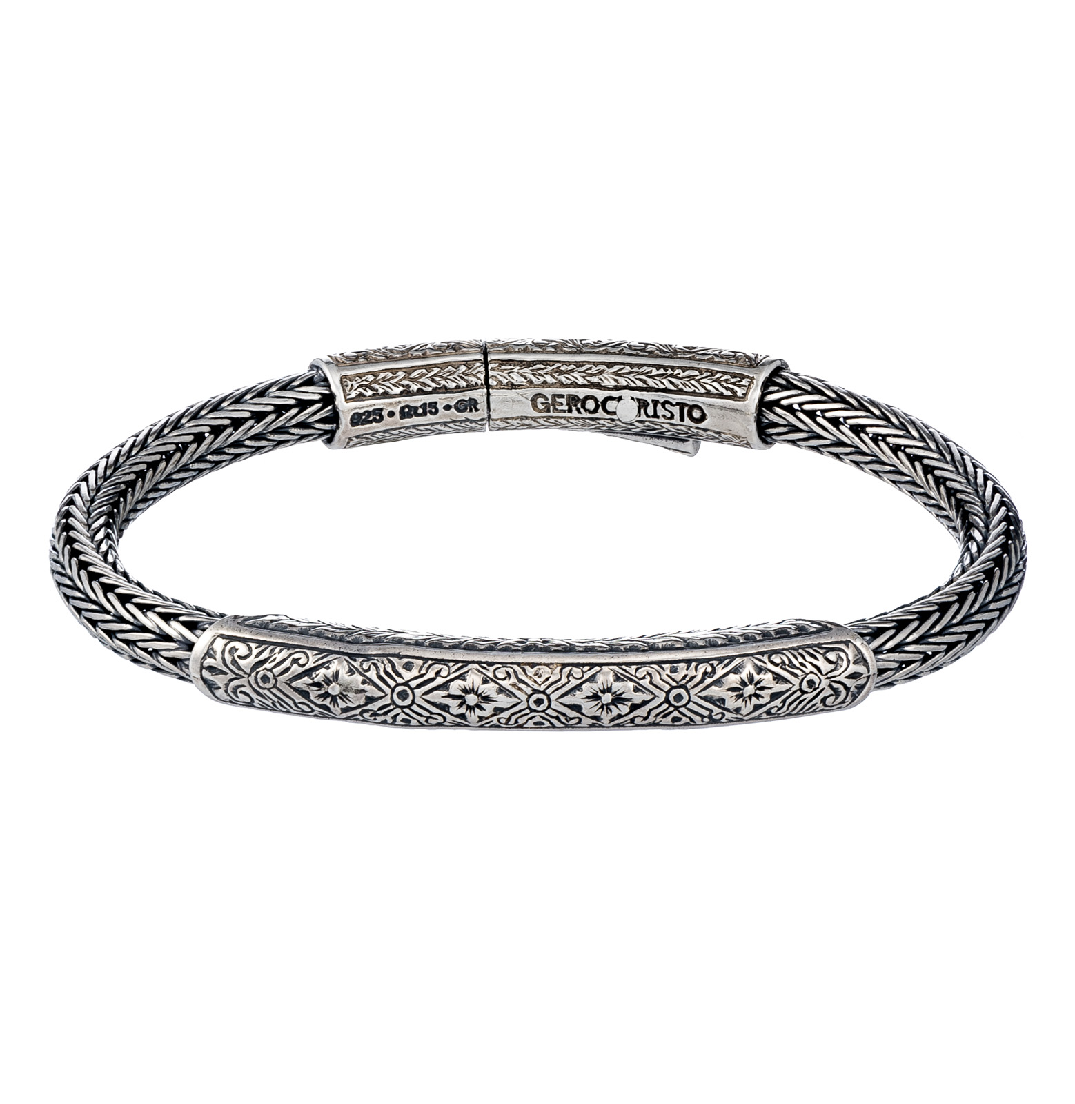 Greek Jewelry, Men’s Bracelet Braided Handmade Chain 925 Sterling Silver