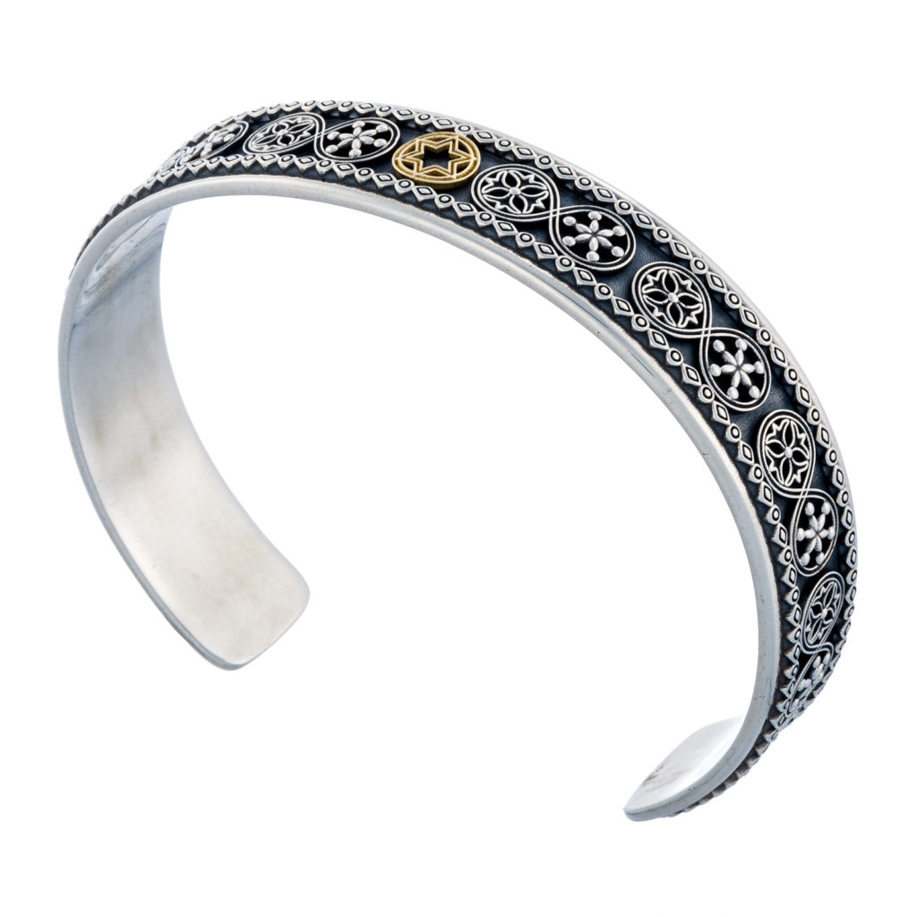 Star of David Men’s Open Cuff Bracelet 18k Yellow Gold and Sterling Silver 925