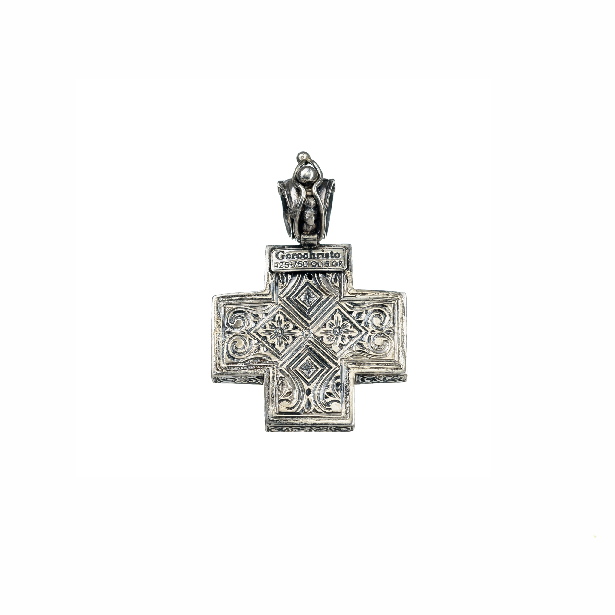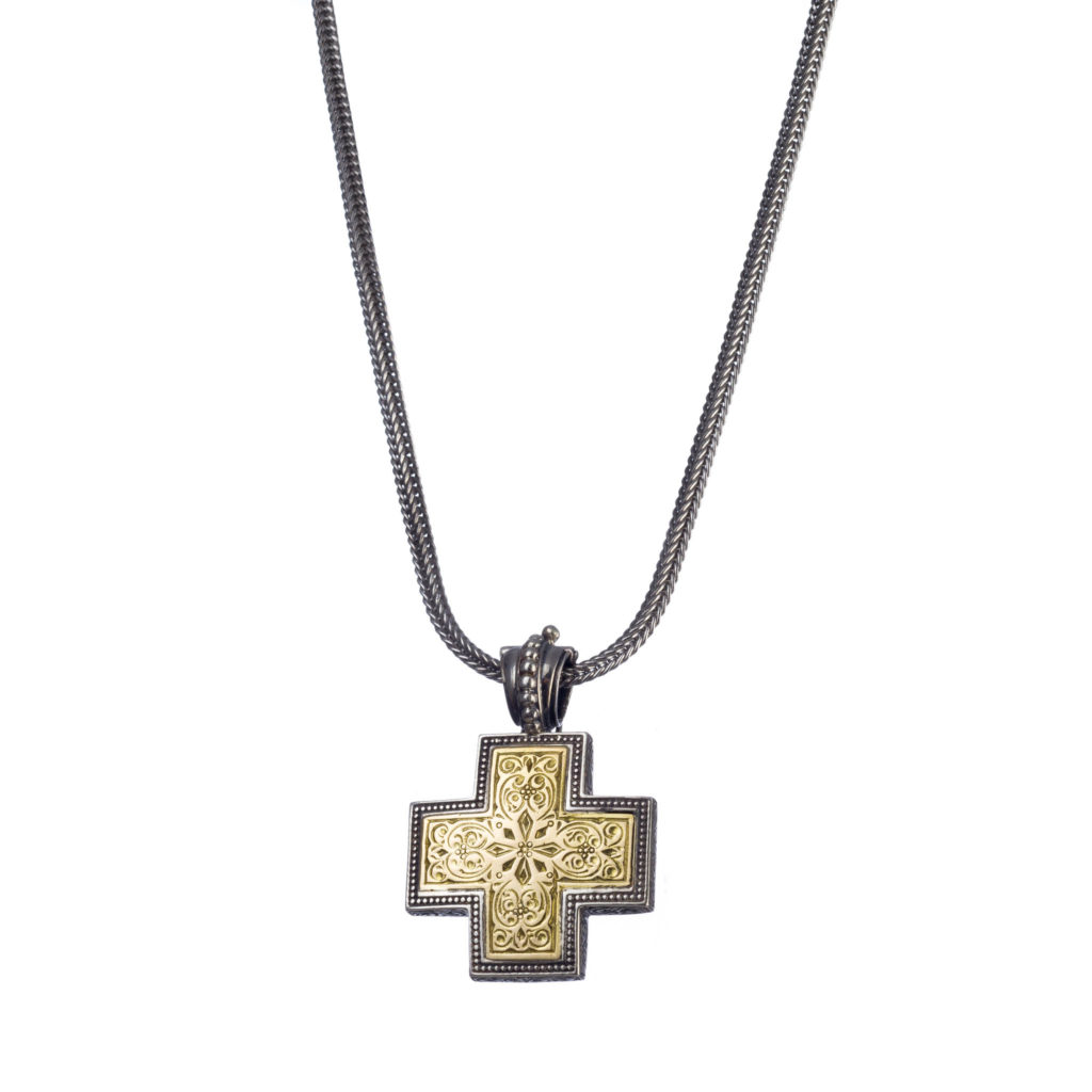Greek Jewelry, Byzantine Cross Pendant 18k Yellow Gold and Sterling Silver 925