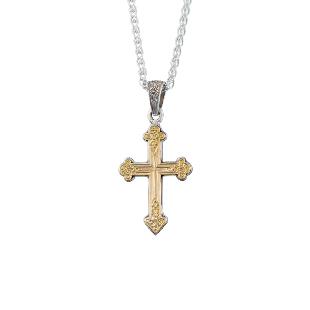 Men’s Byzantine Cross Pendant 18k Yellow Gold and Sterling Silver 925