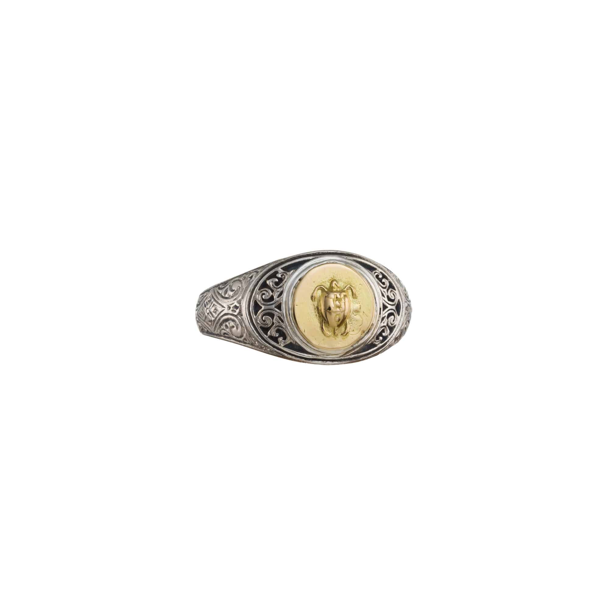 Antique Coin Symbol Turtle Ring for men’s 18k Yellow Gold and Sterling silver 925