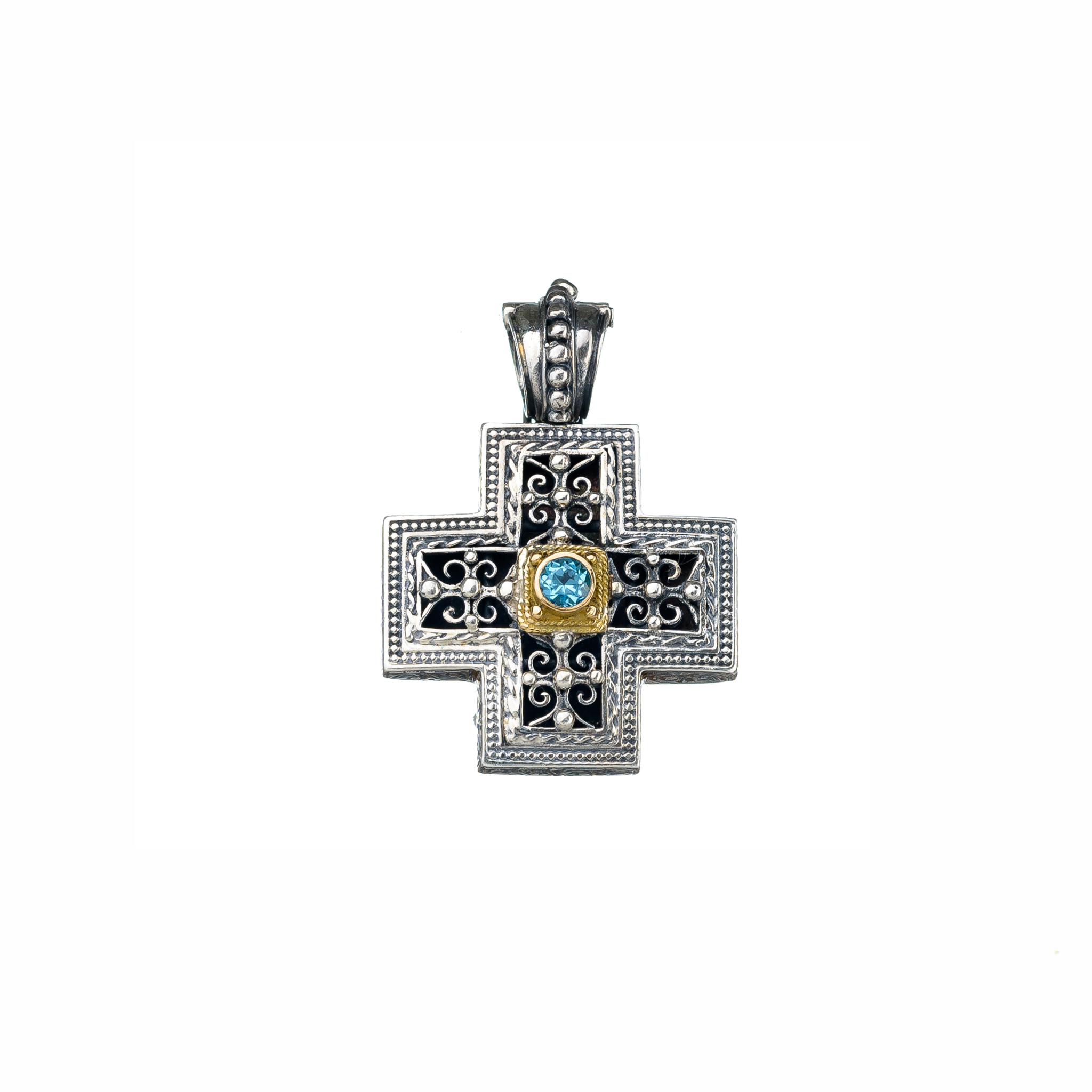 Greek Jewelry, Byzantine Cross Pendant 18k Yellow Gold and Sterling Silver 925