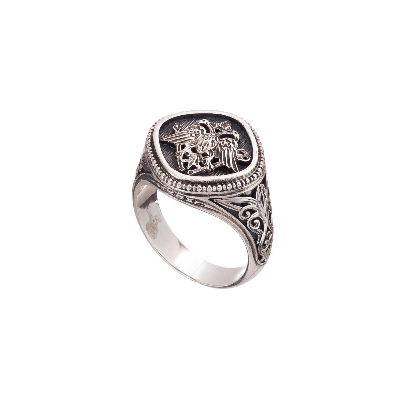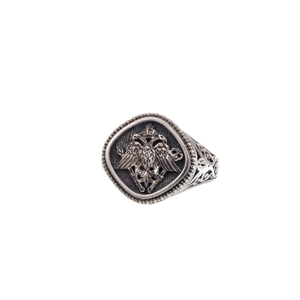 Greek Jewelry, Double headed eagle ring byzantine imperial symbol for men’s sterling silver 925