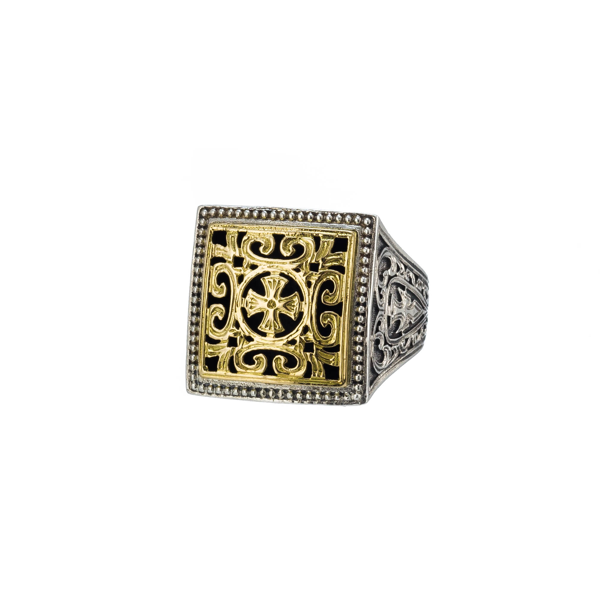 Greek Jewelry, Filigree Byzantine Ring for Men’s 18k Yellow Gold and Sterling Silver 925