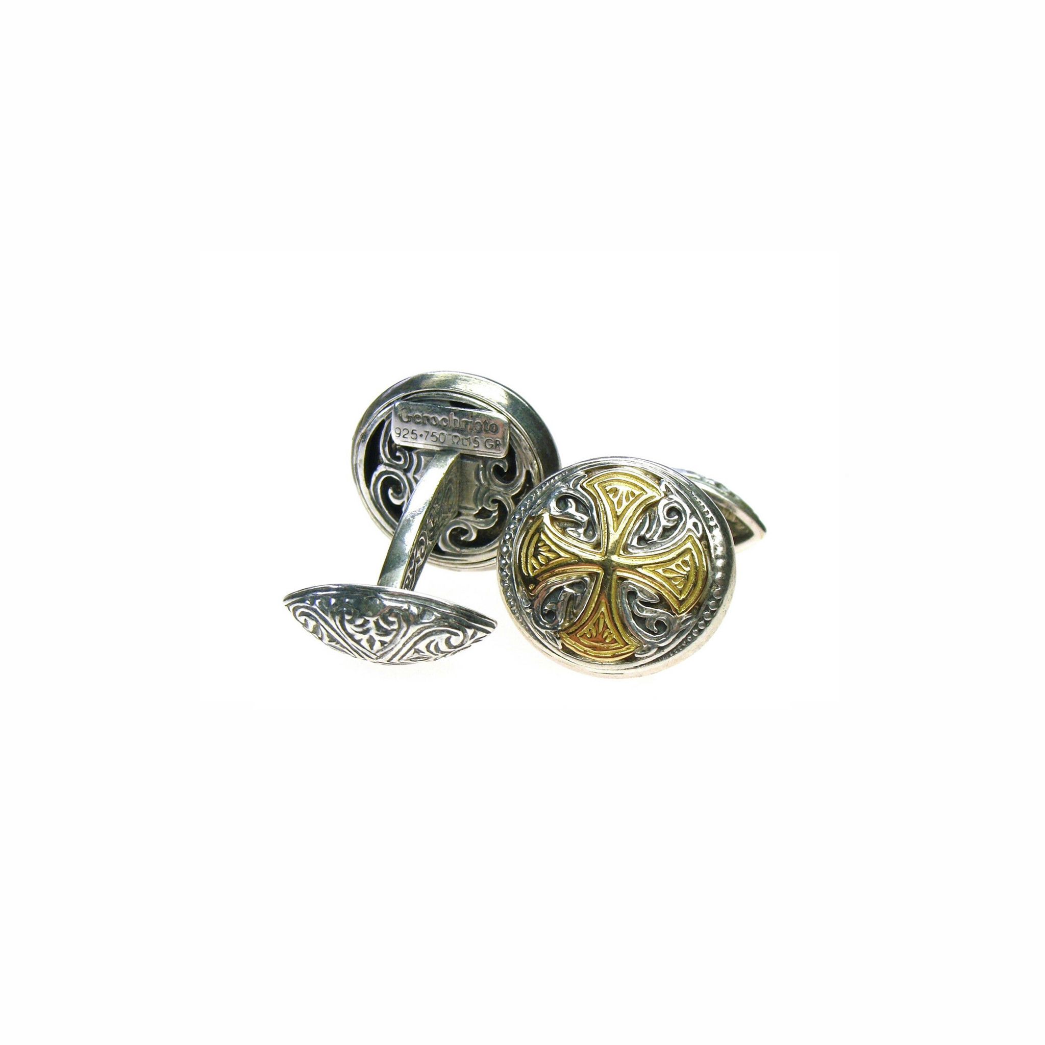 Greek Jewelry, Maltese Cross Cufflinks 18k Yellow gold and Silver 925