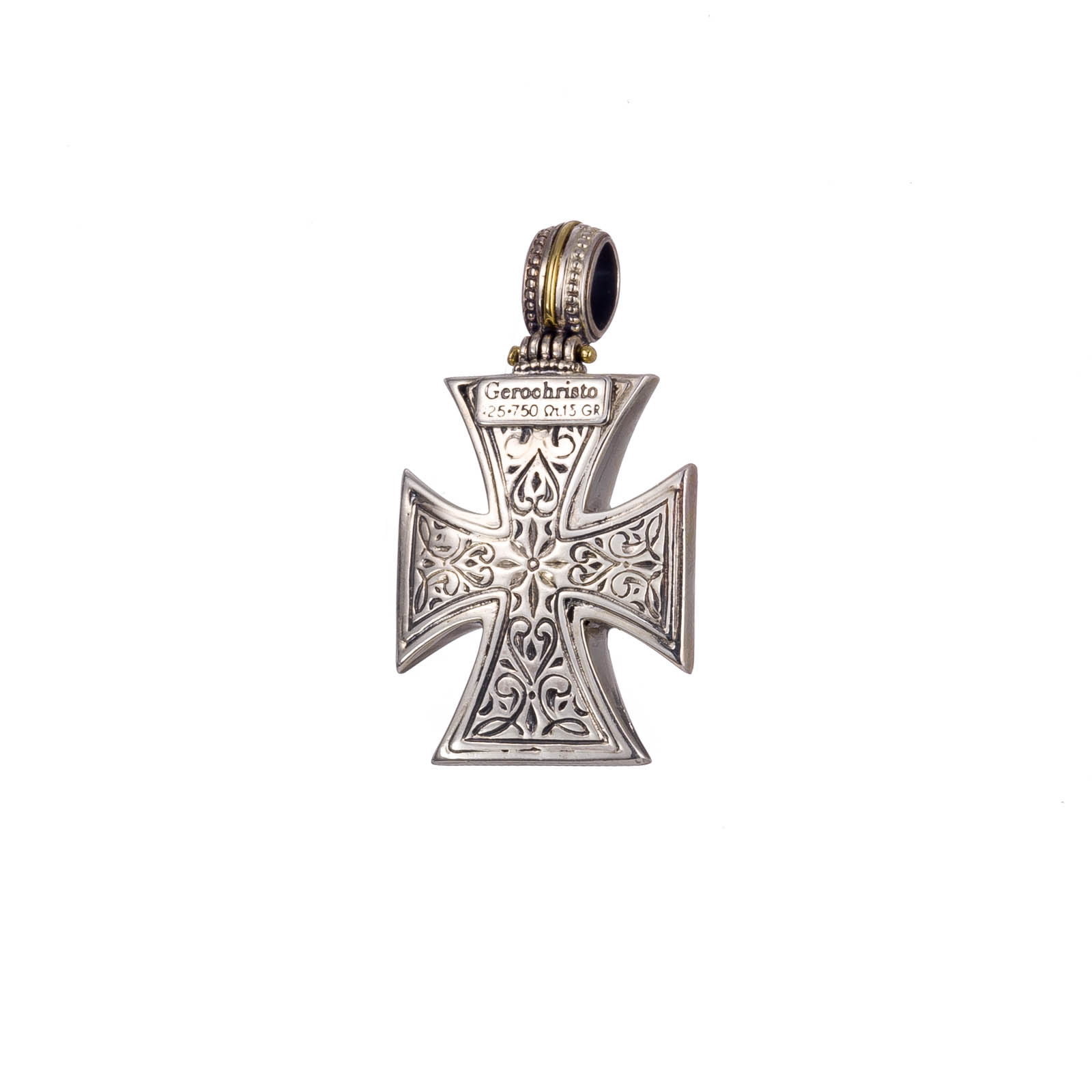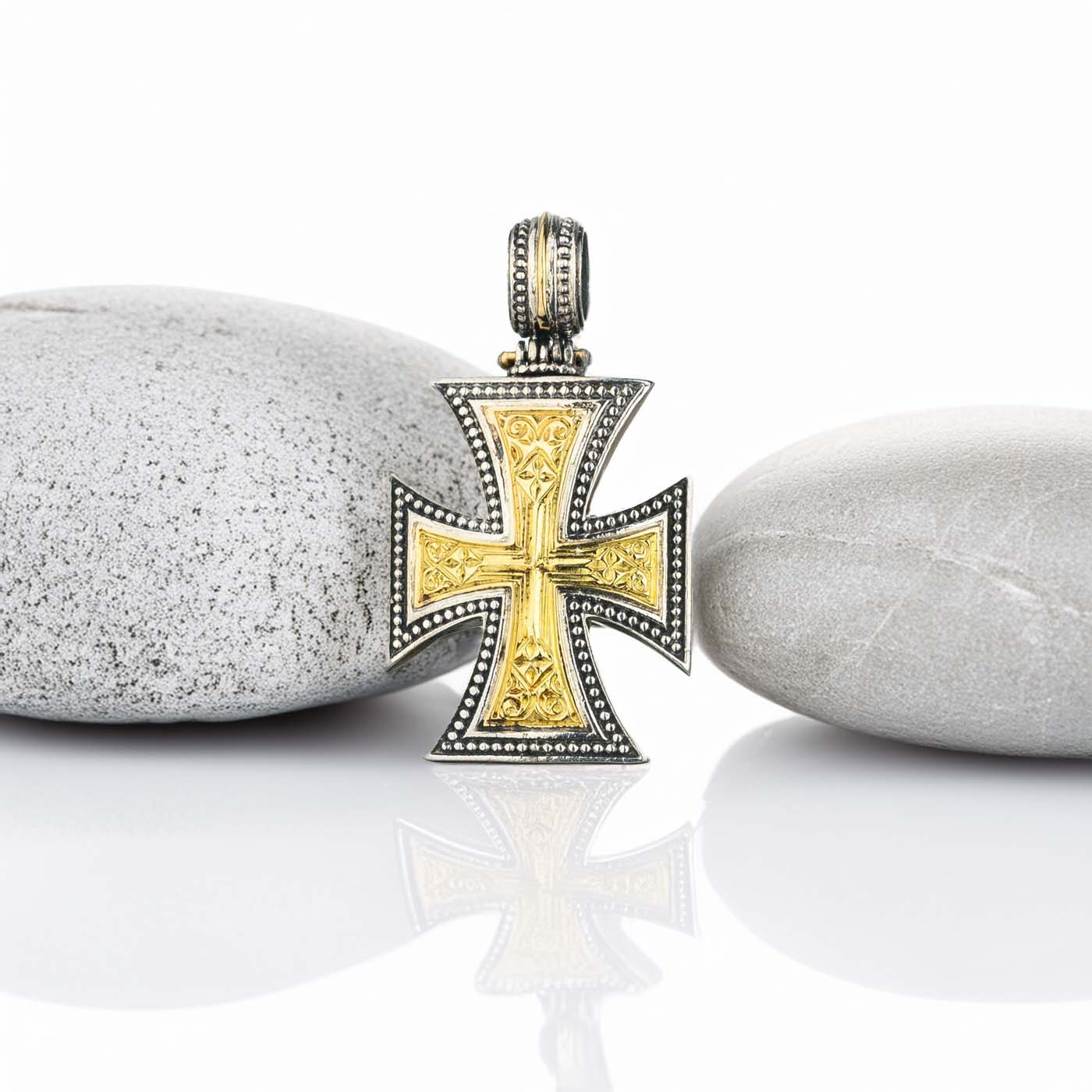 Greek Jewelry, Maltese Men’s Cross Pendant 18k yellow gold and Sterling Silver 925