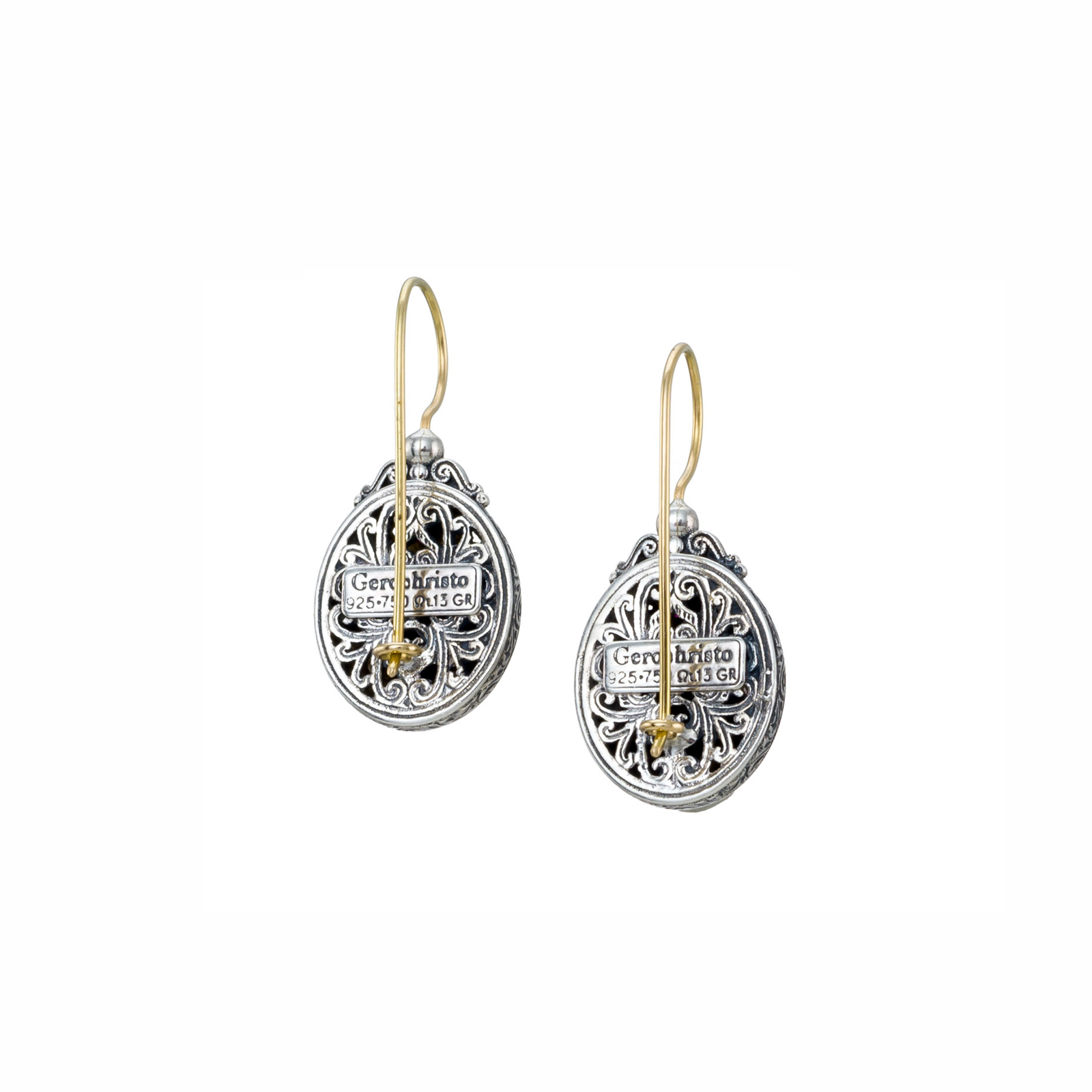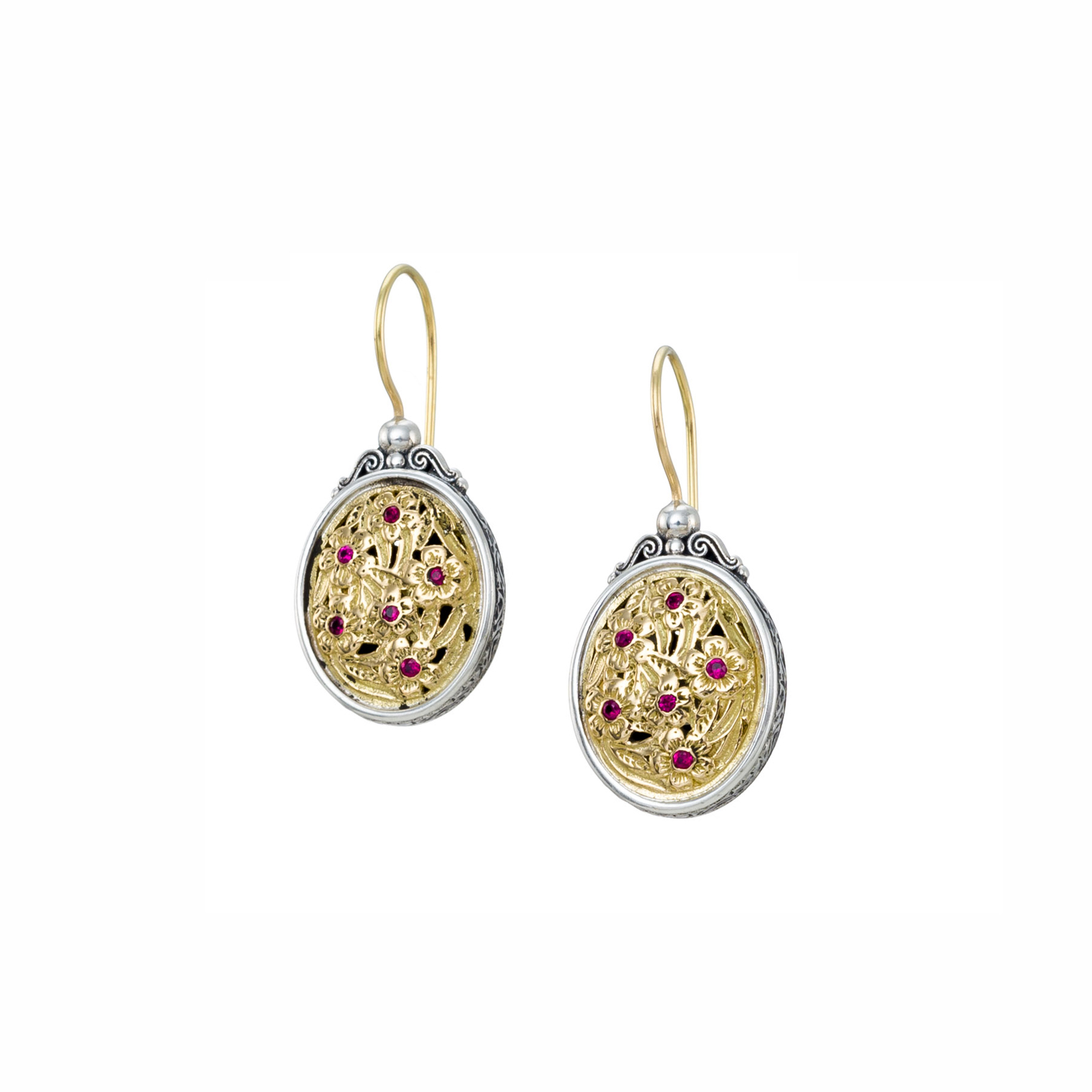 Greek Jewelry, Handmade Gerochristo. Flower Ruby Earrings Beautiful for Women’s 18k Yellow Gold and Silver