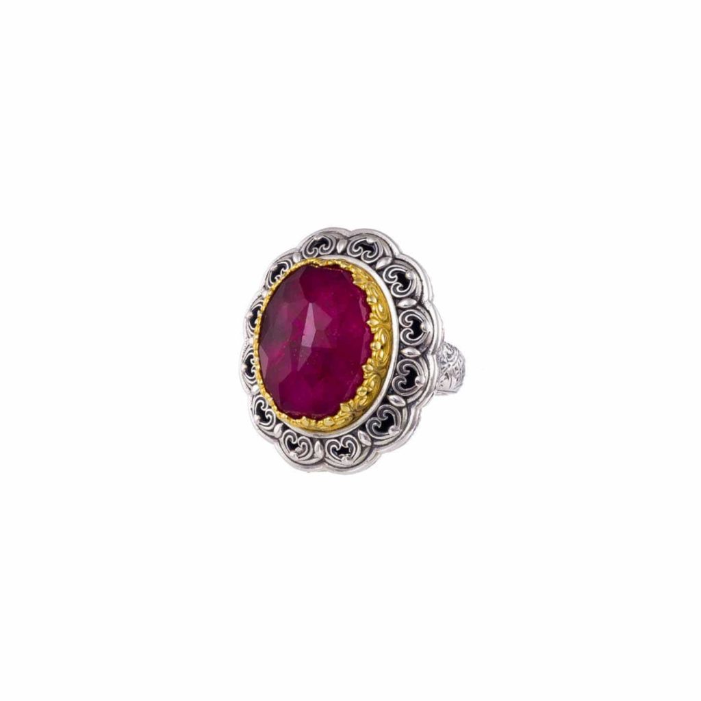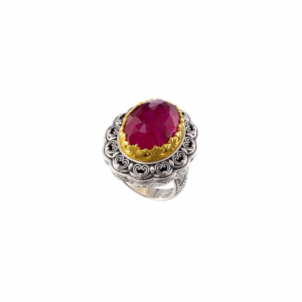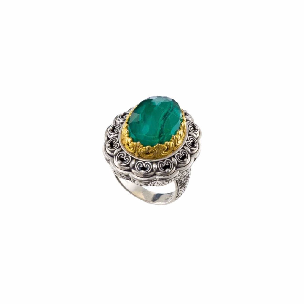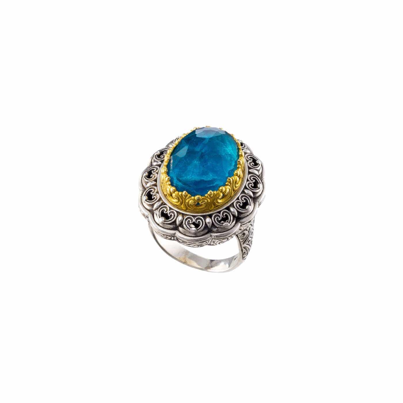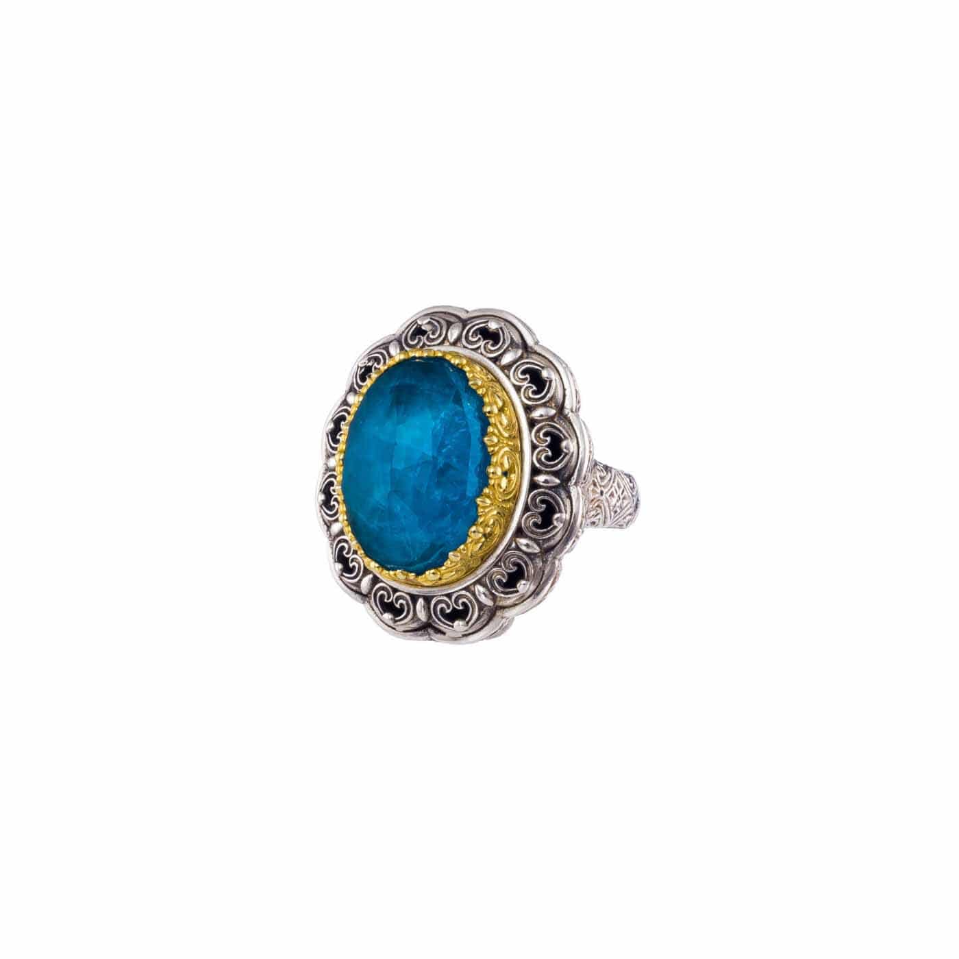 Greek Jewelry, Oval Color Ring Sterling Silver 925 with Gold Plated parts