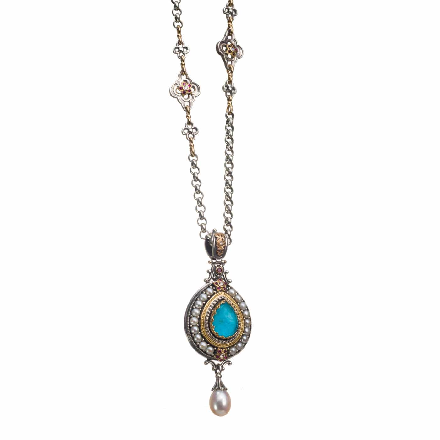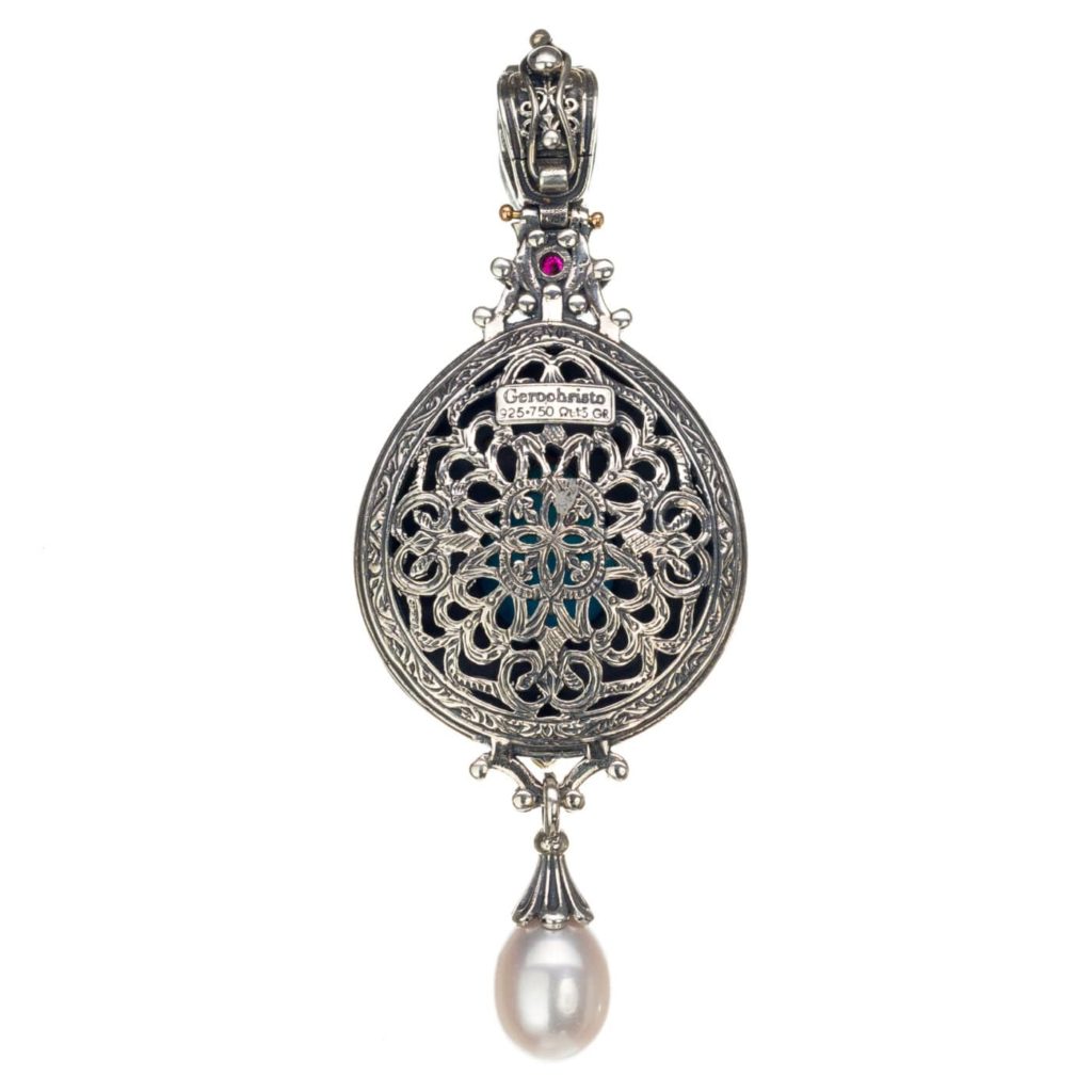 Greek Jewelry, Teardrop Pendant Pearl Drop 18k Yellow Gold and Sterling Silver