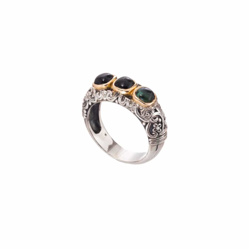 Greek Jewelry, Triple Stones Band Ring k18yellow gold and Sterling Silver 925