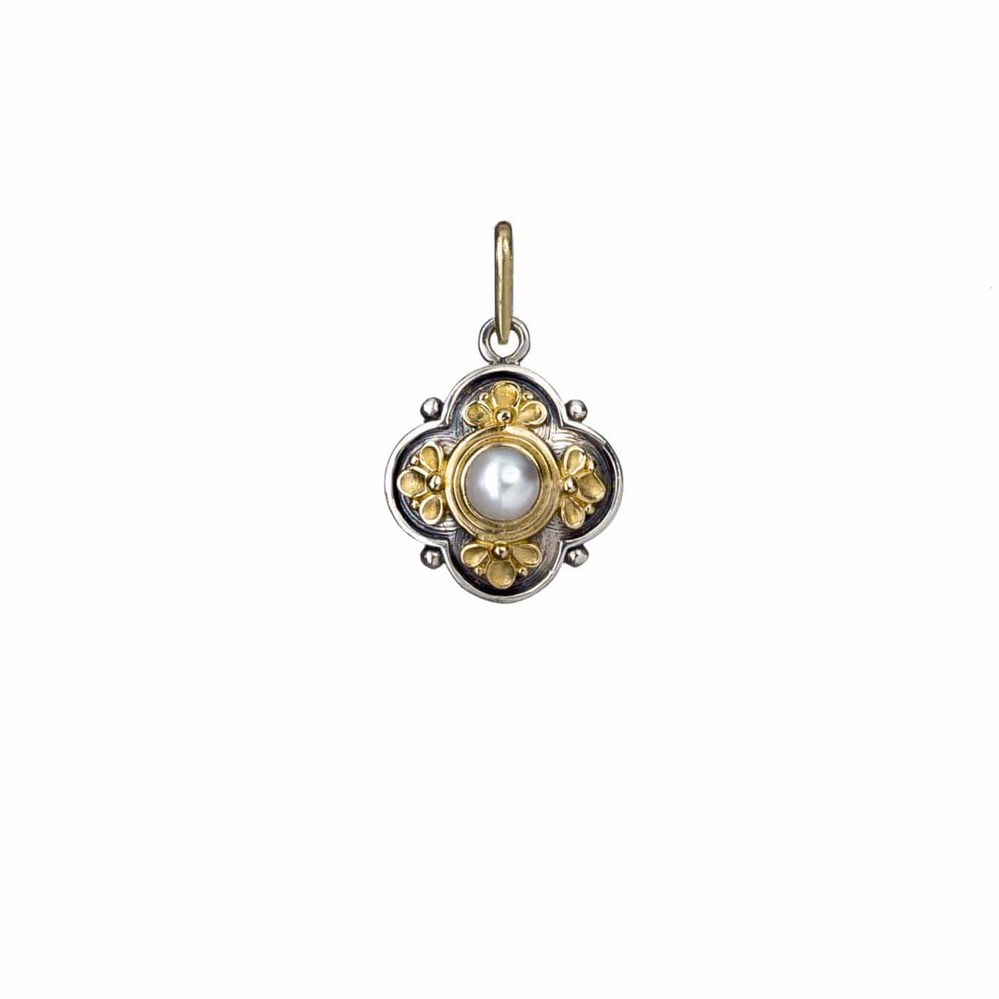 Byzantine Flower Pendant for Women’s Yellow Gold k18 and Sterling Silver 925