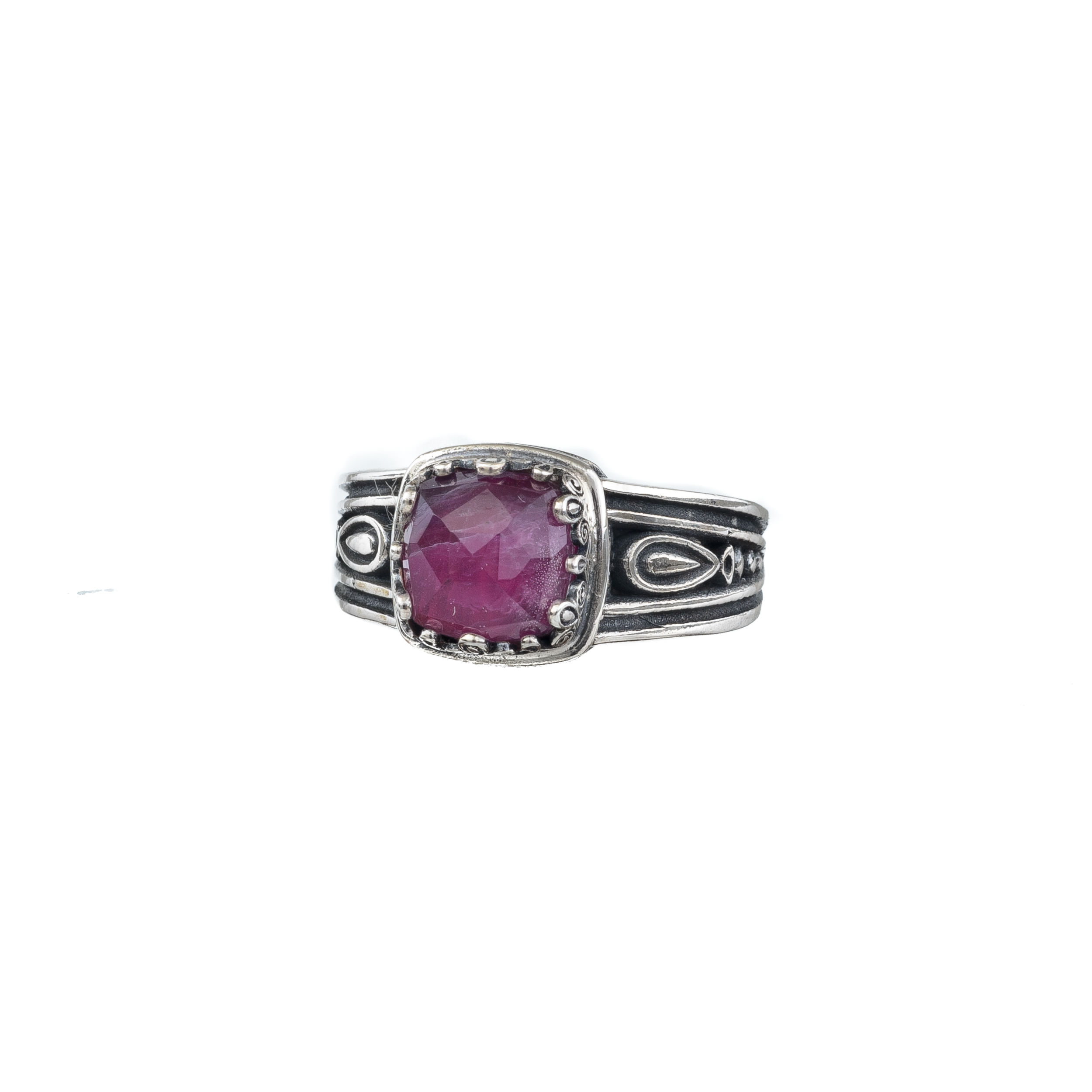 Greek Jewelry, Square Color Ring in Sterling Silver 925