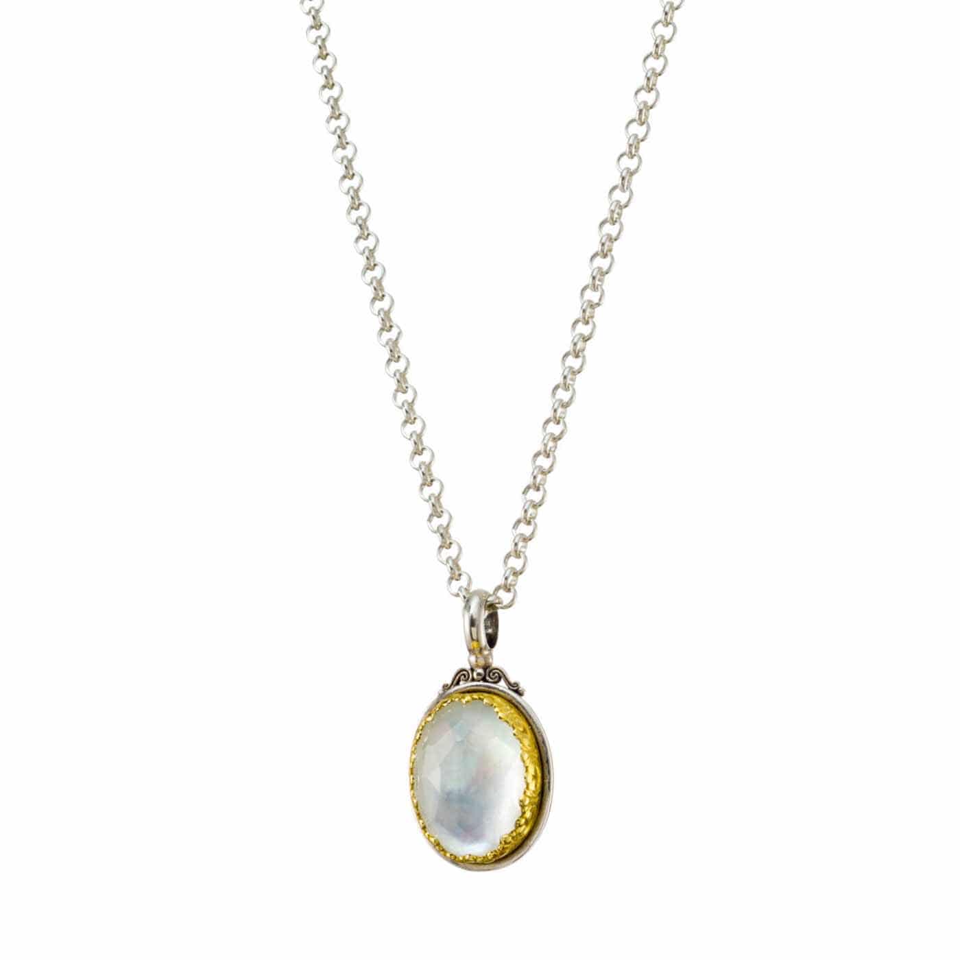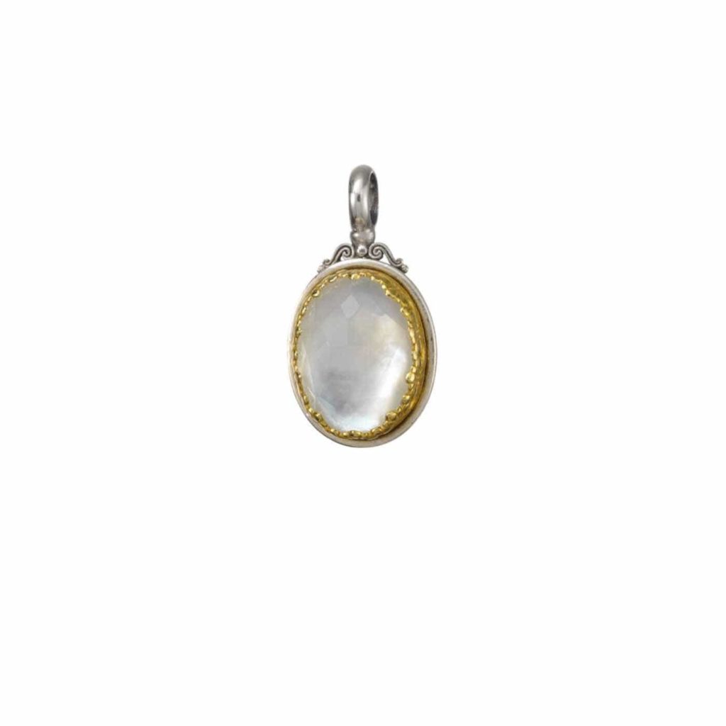 Greek Jewelry, Oval Pendant in Sterling Silver 925 with Gold plated parts
