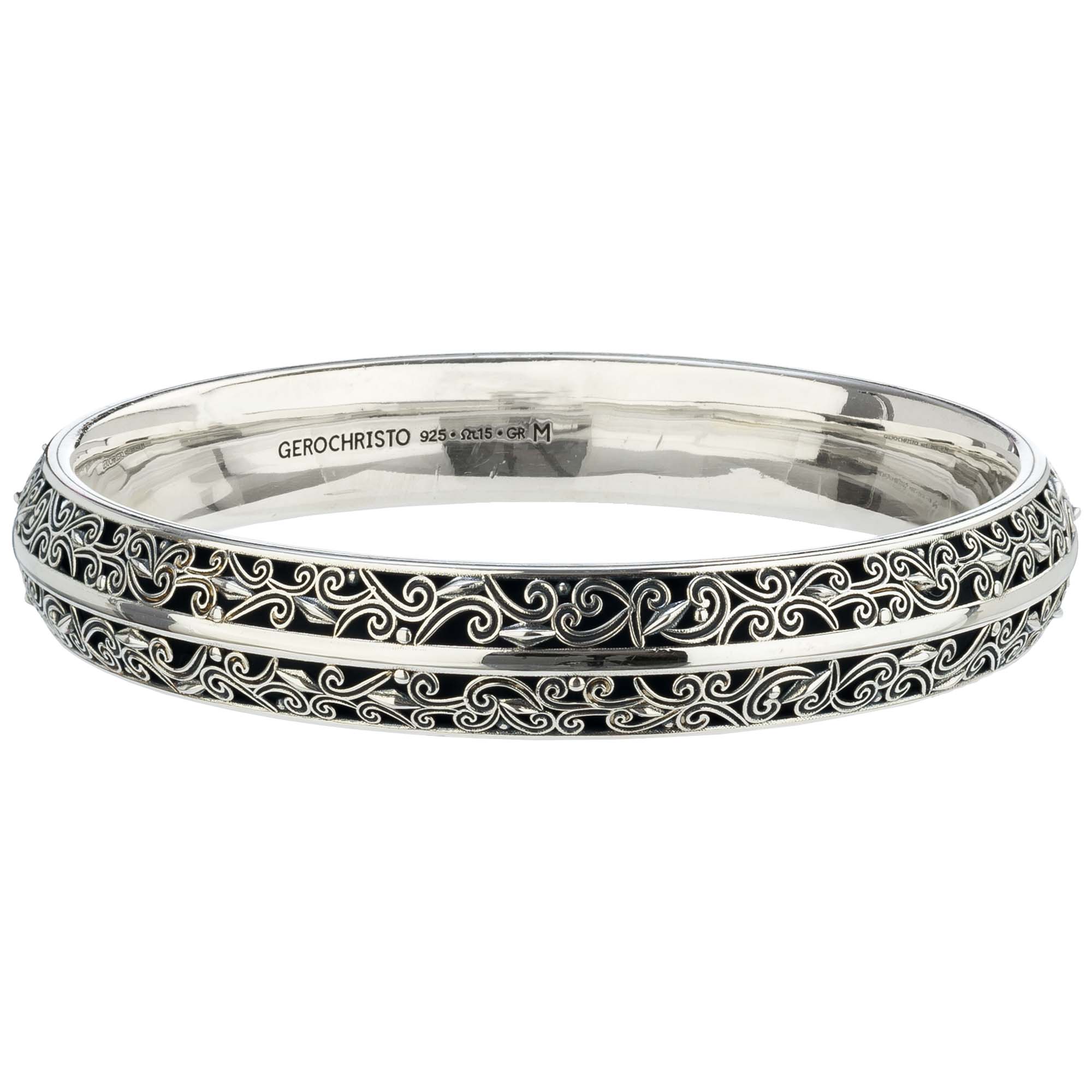 Greek Jewelry, Bangle Bracelet Solid Silver in oxidized Silver 925 for Women’s 13mm