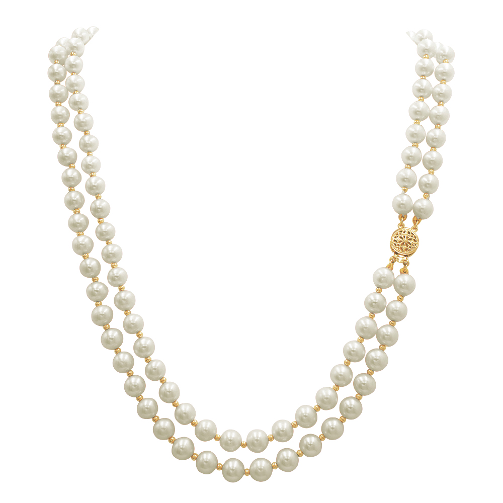 This exquisite 2 Rows 6.5-7mm Double Strand Pearls Necklace in k14 Gold is a classic piece that will complement any outfit.