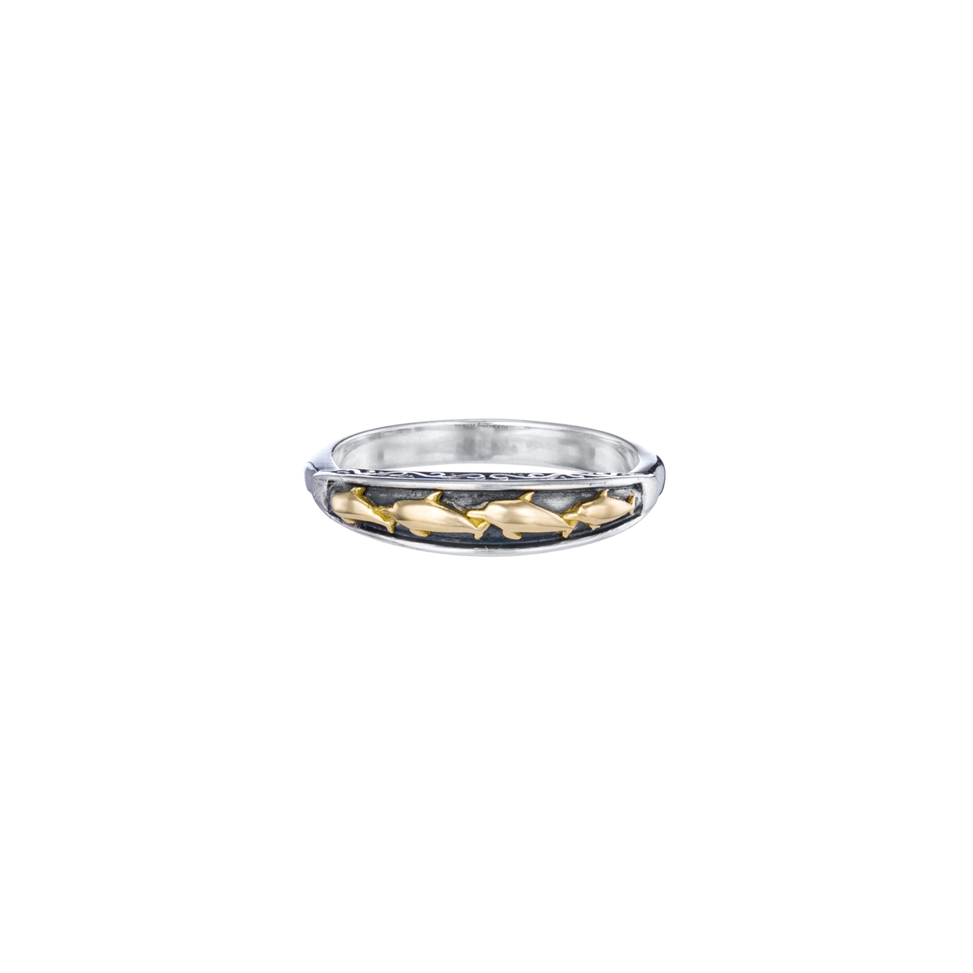 Greek Jewelry. Dolphins Band Ring k18 Yellow Gold and Sterling Silver 925