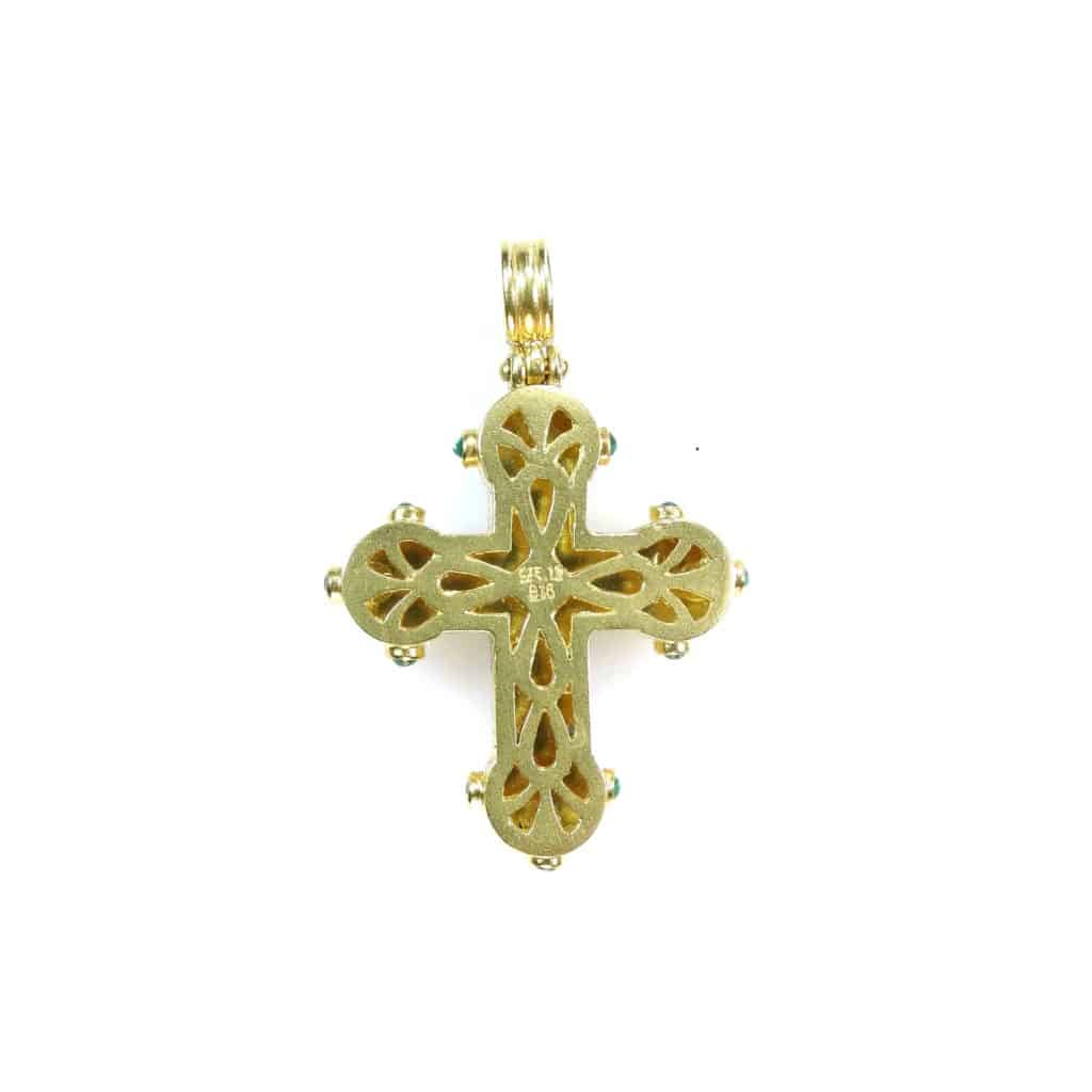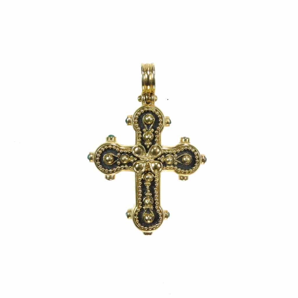 Greek Jewelry, Byzantine cross pendant, handcrafted of 18K gold and black rhodium