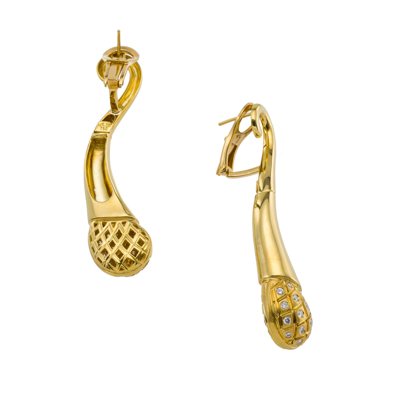 Greek Jewelry, Light up any occasion with these dazzling 18k yellow gold earrings featuring a edge of 16 diamonds