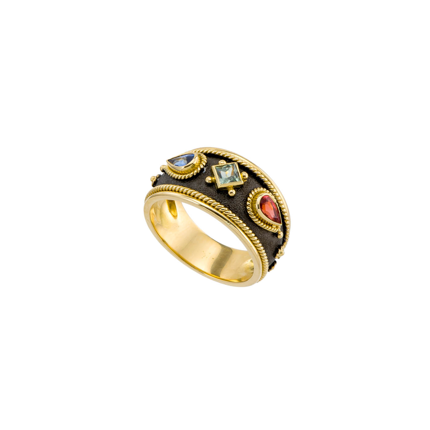 Triple Cocktail Stone Byzantine Band Ring in 18k Yellow Gold