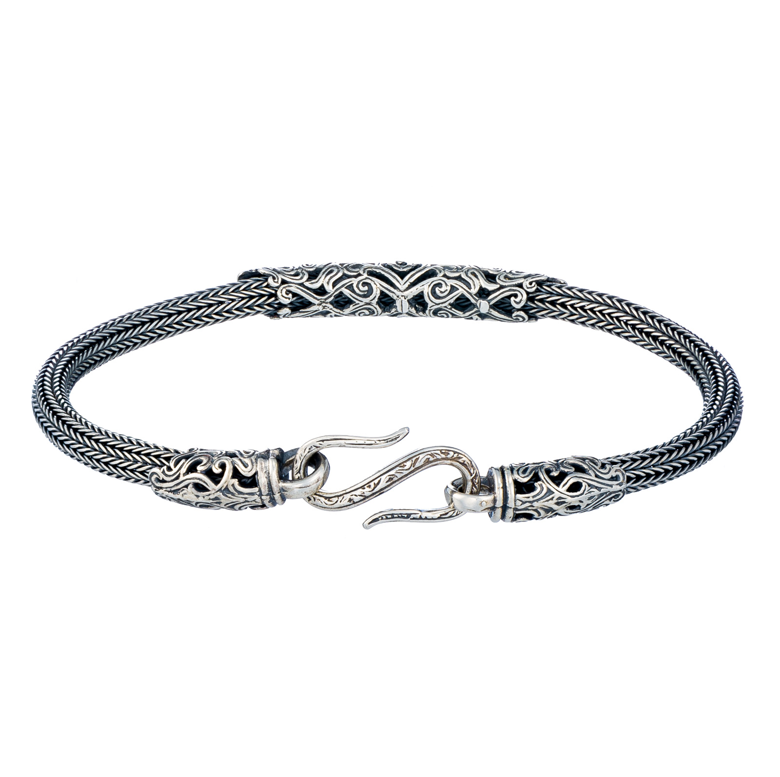 Greek Jewelry, Men’s Bracelet Braided Handmade Chain 925 Sterling Silver