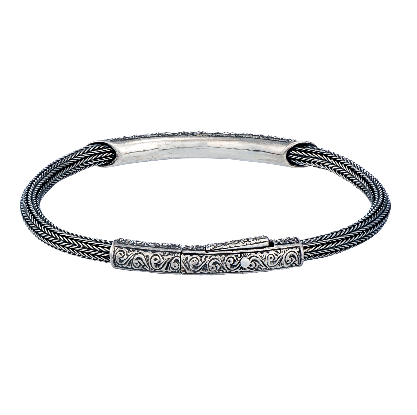 Greek Jewelry, Men’s Bracelet Braided Handmade Chain 925 Sterling Silver