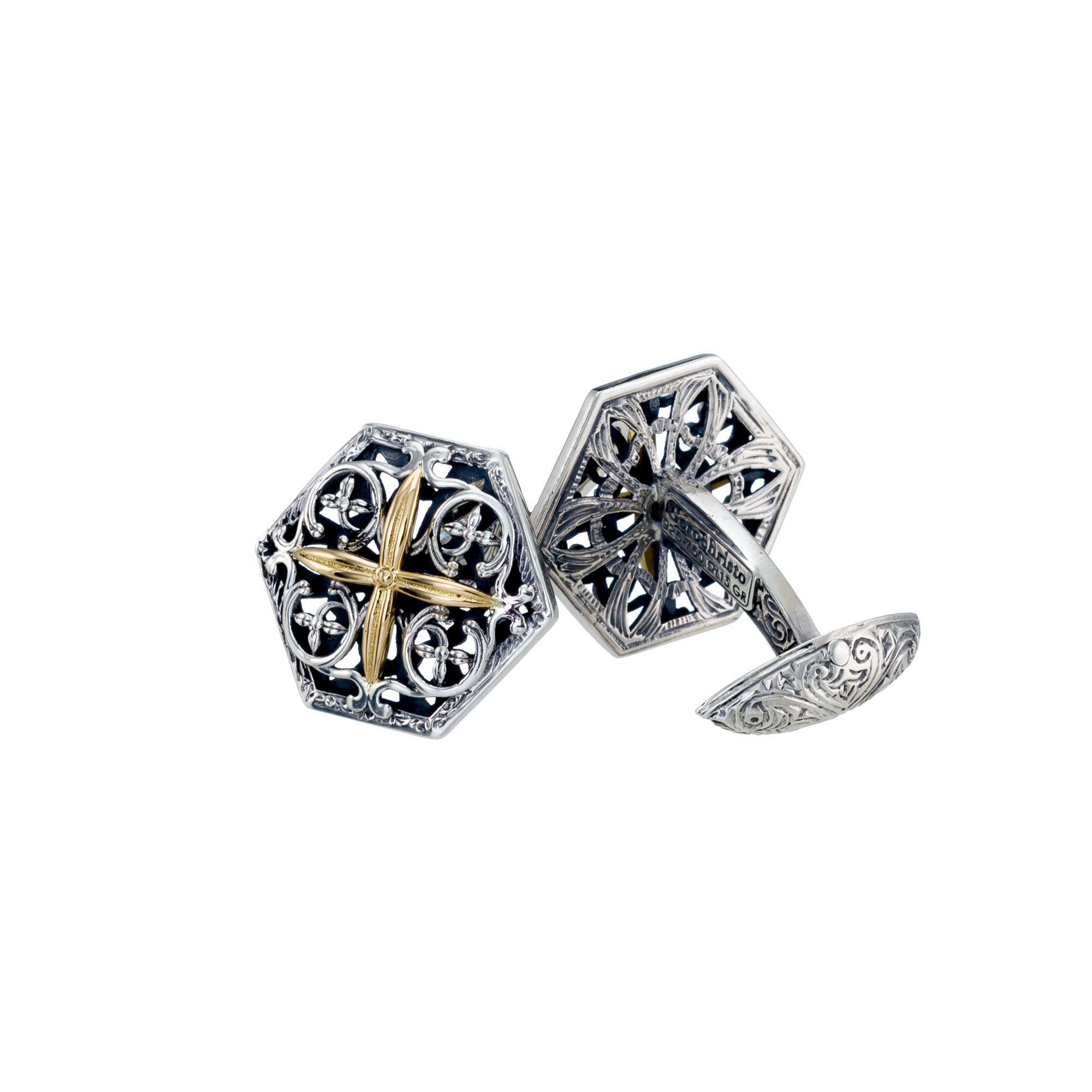 Greek Jewelry, Byzantine Cross Cufflinks 18k Yellow gold and Silver 925