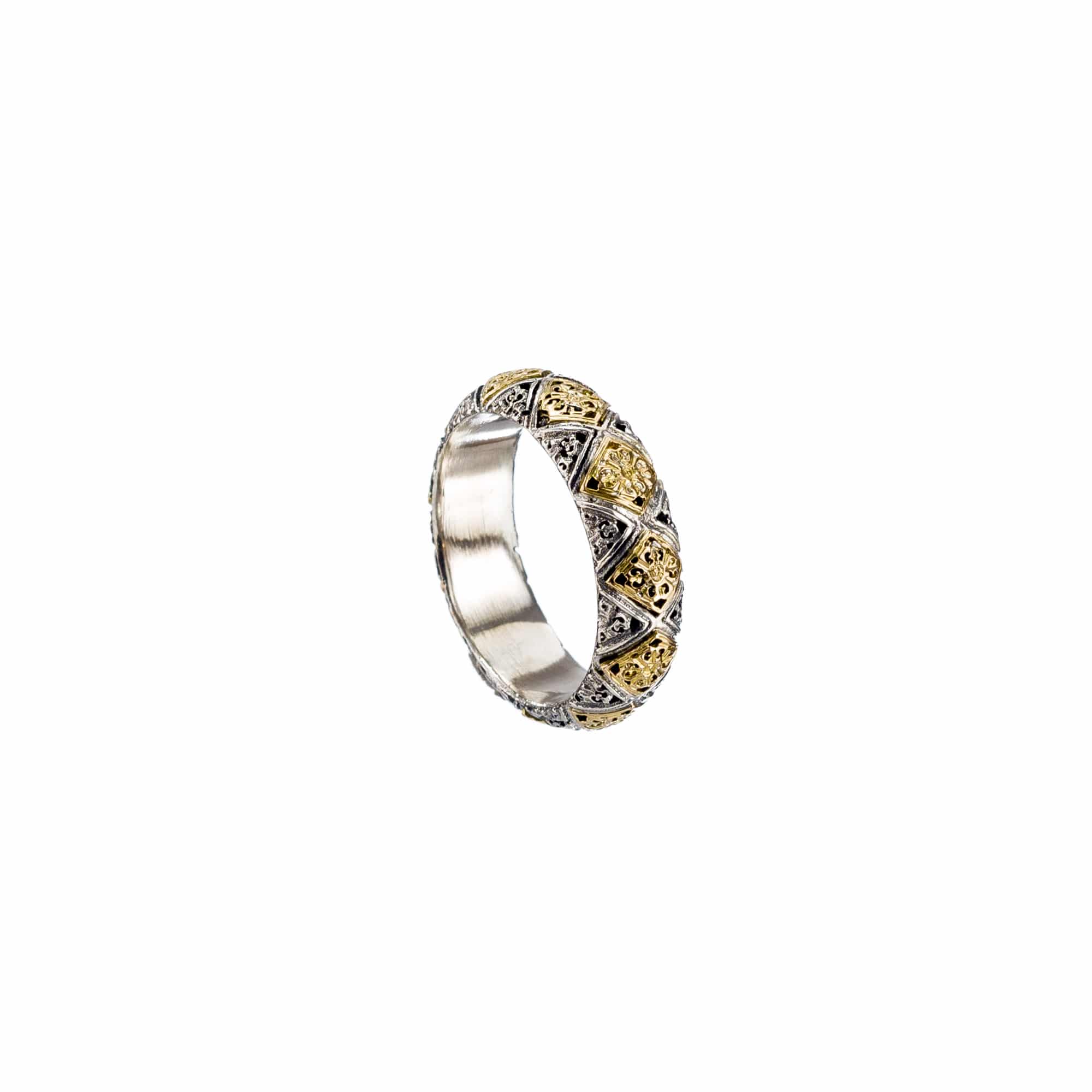 Greek Jewelry. Byzantine Band Ring Men’s 5mmYellow Gold k18 and Sterling Silver 925